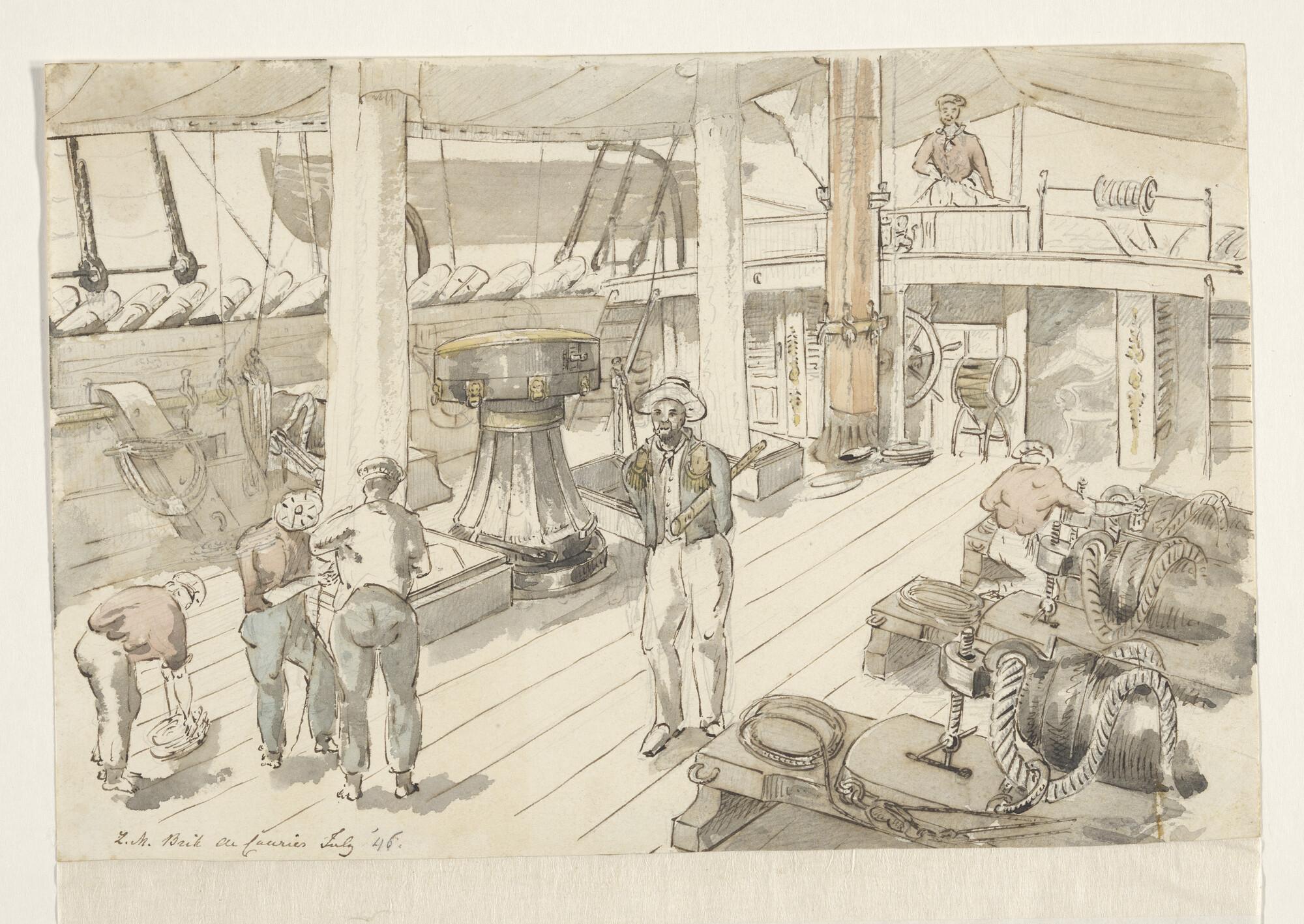 Dekaanzicht aan boord van de brik Zr.Ms. Courier