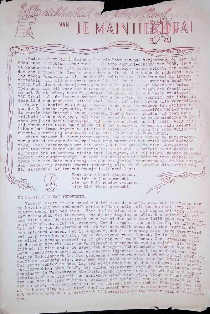 V.O.D. Voorlichtingsdienst van Je Maintiendrai, No. ...