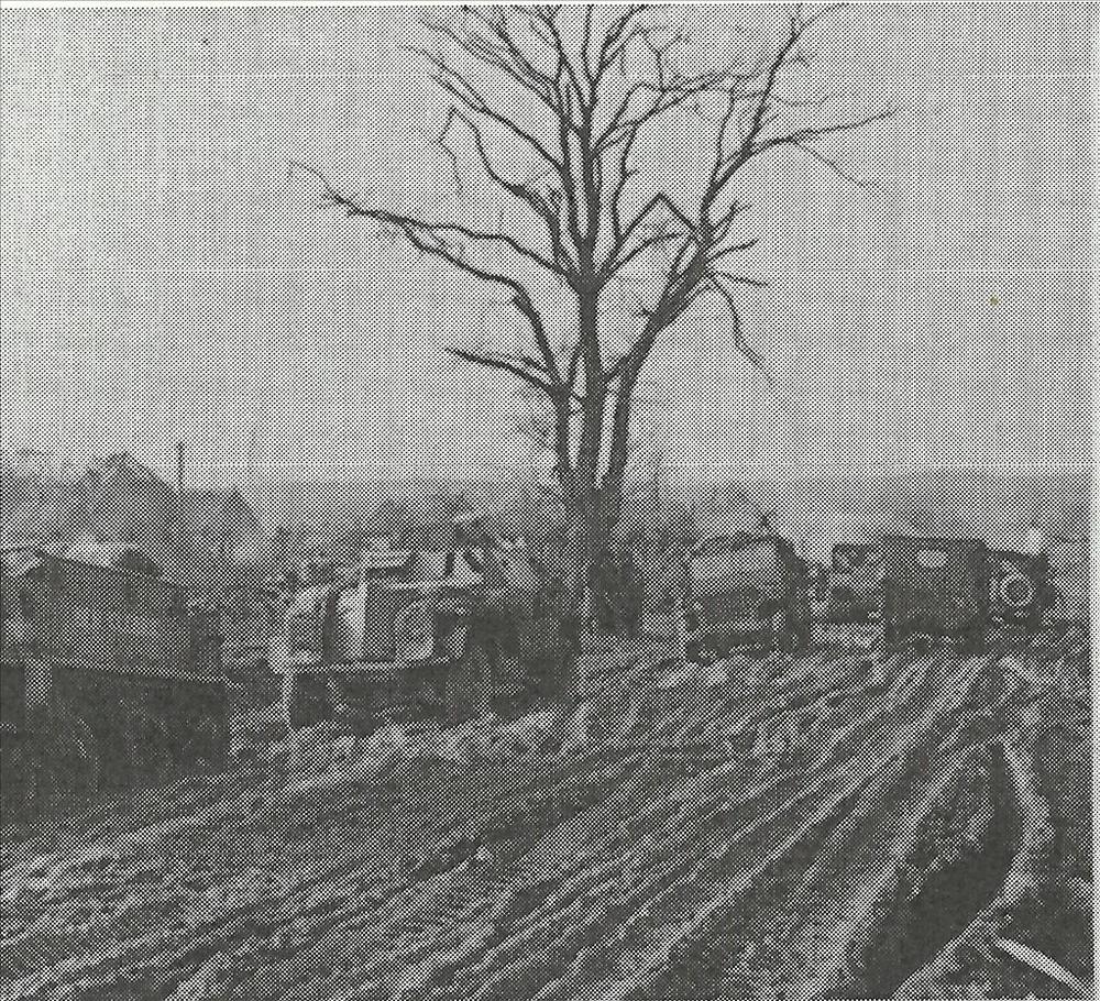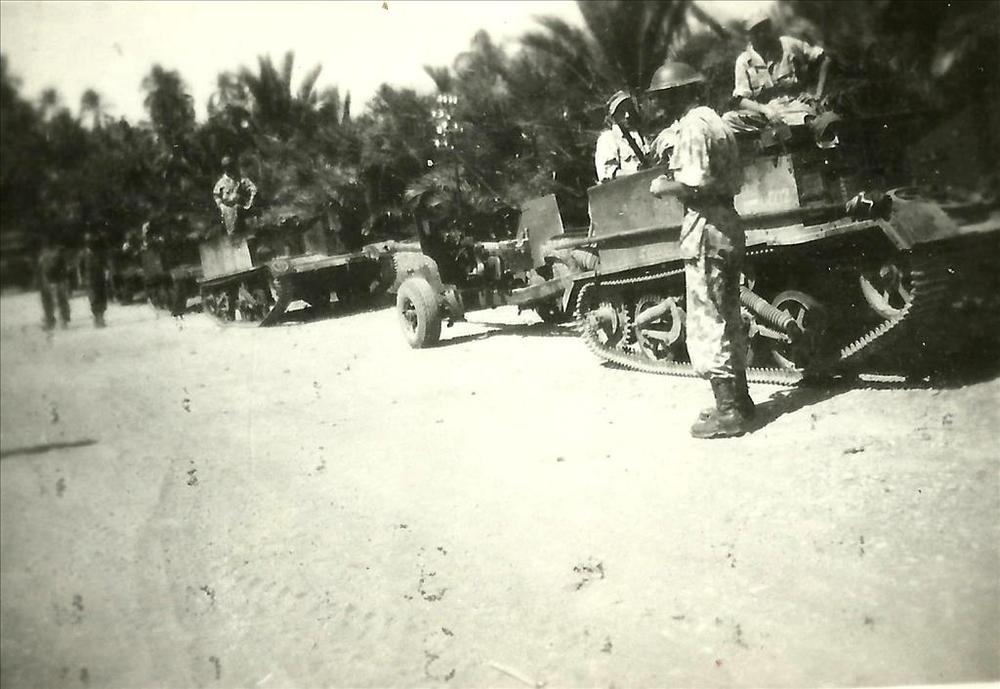 Bren Carrier, Pantserwagen en jeeps op modderige weg...