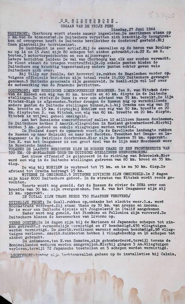 De Nieuwsbode, 27 juni 1944