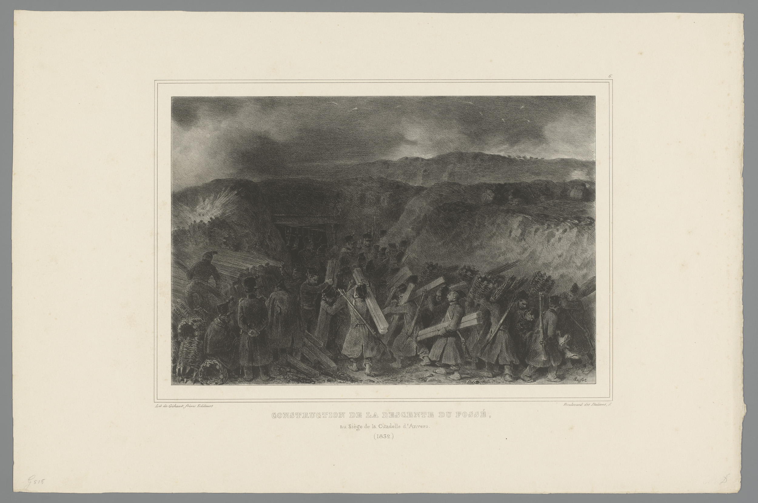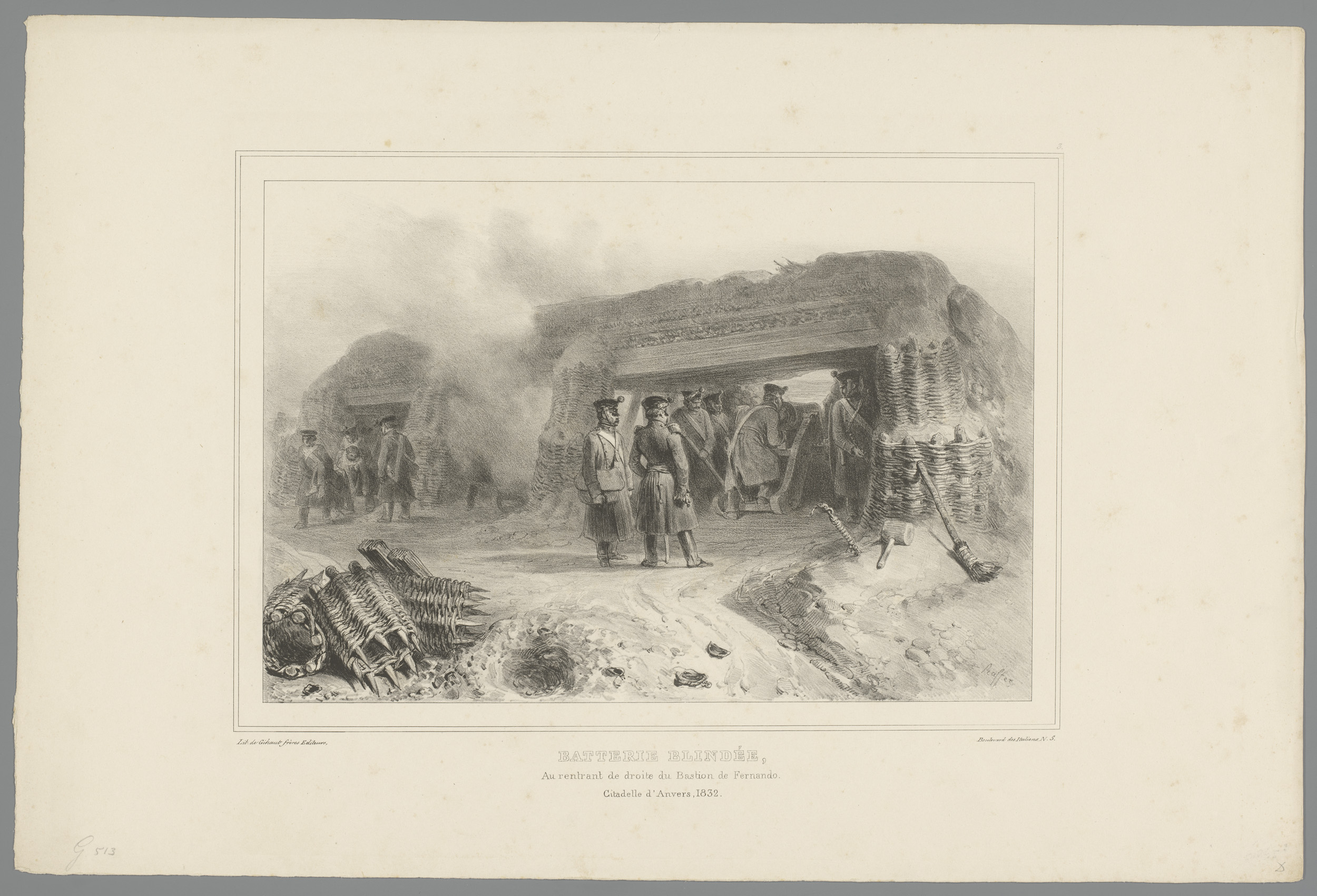 Bominslag op een ingegraven kanon, 1832