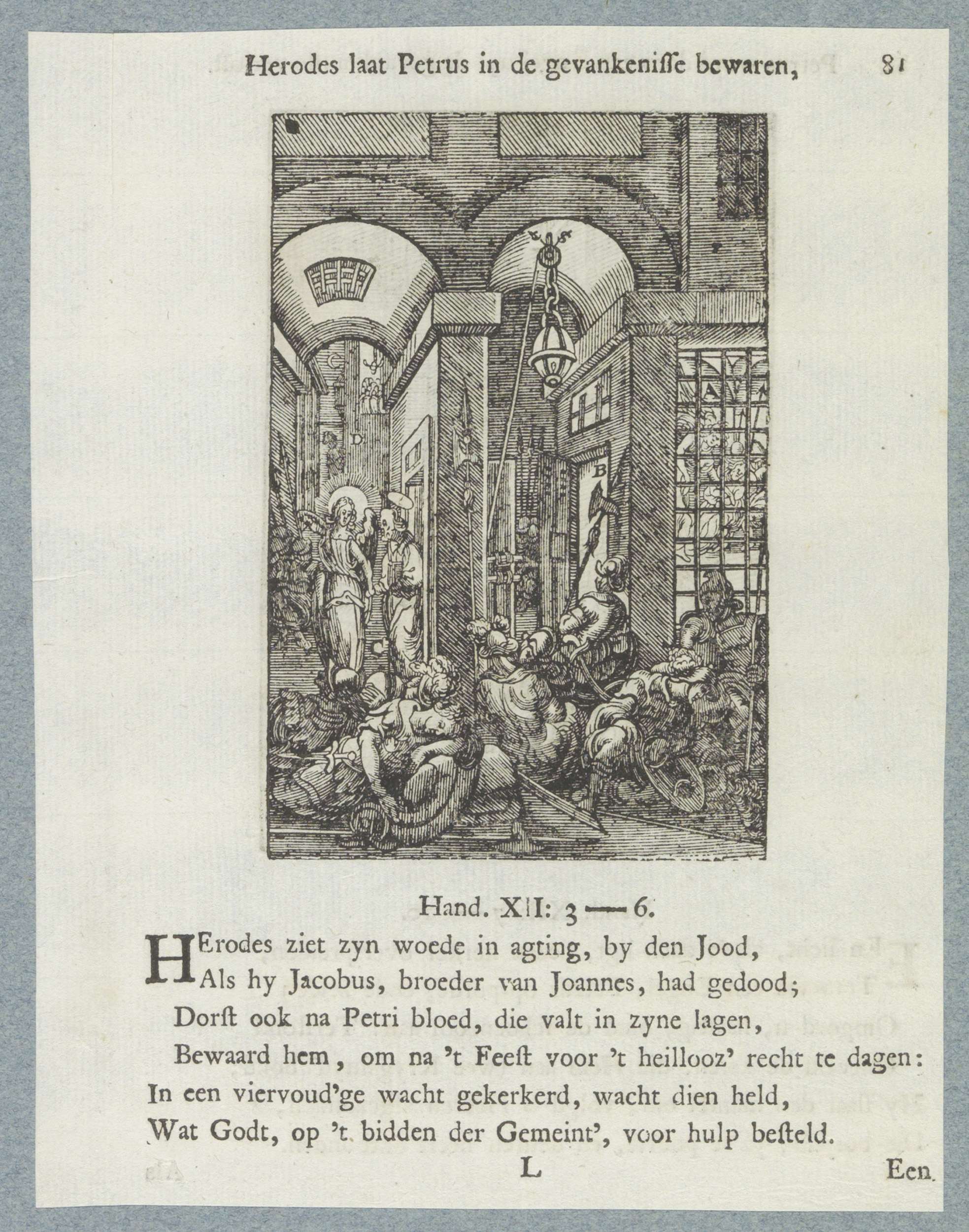 Petrus wordt door de engel uit de gevangenis bevrijd