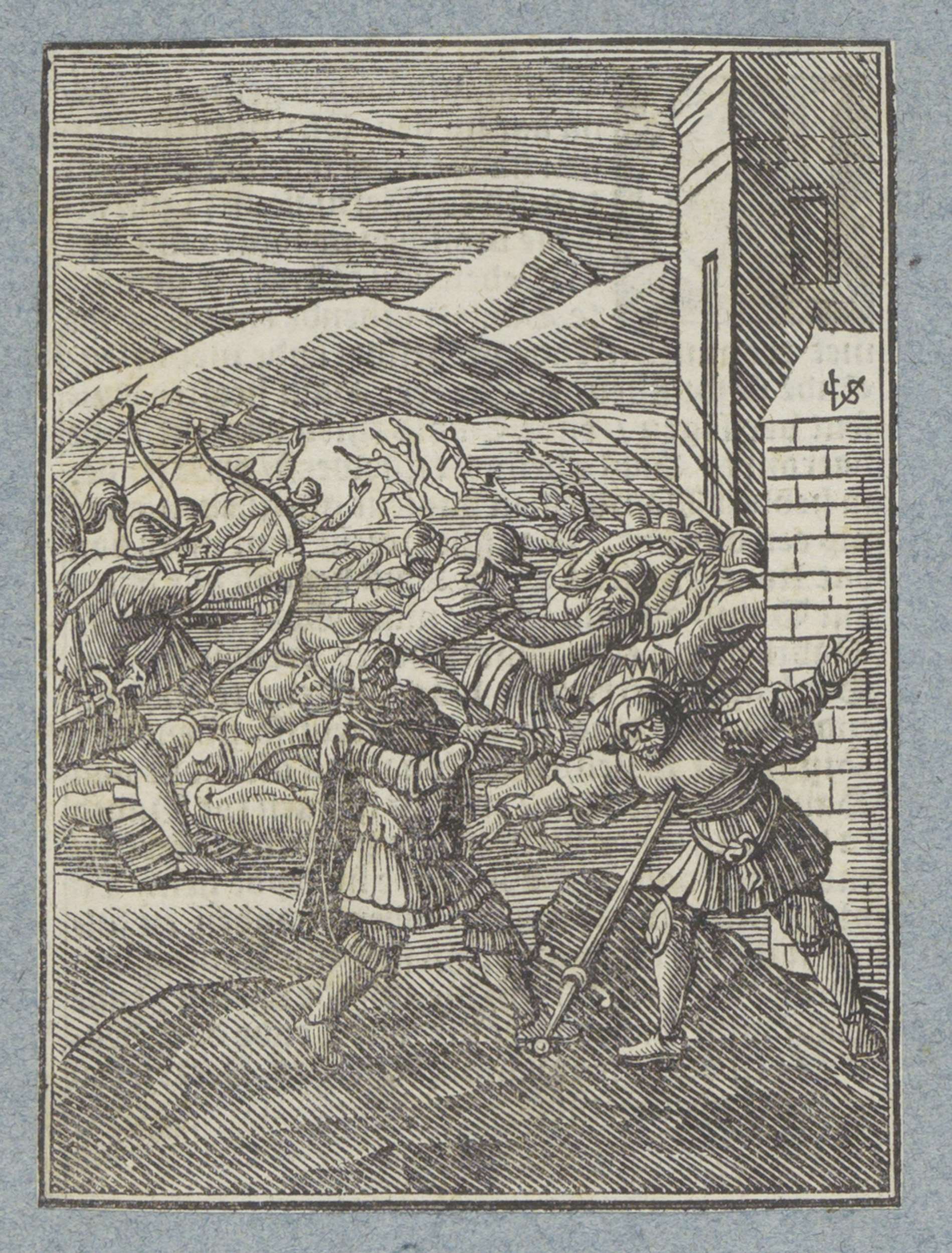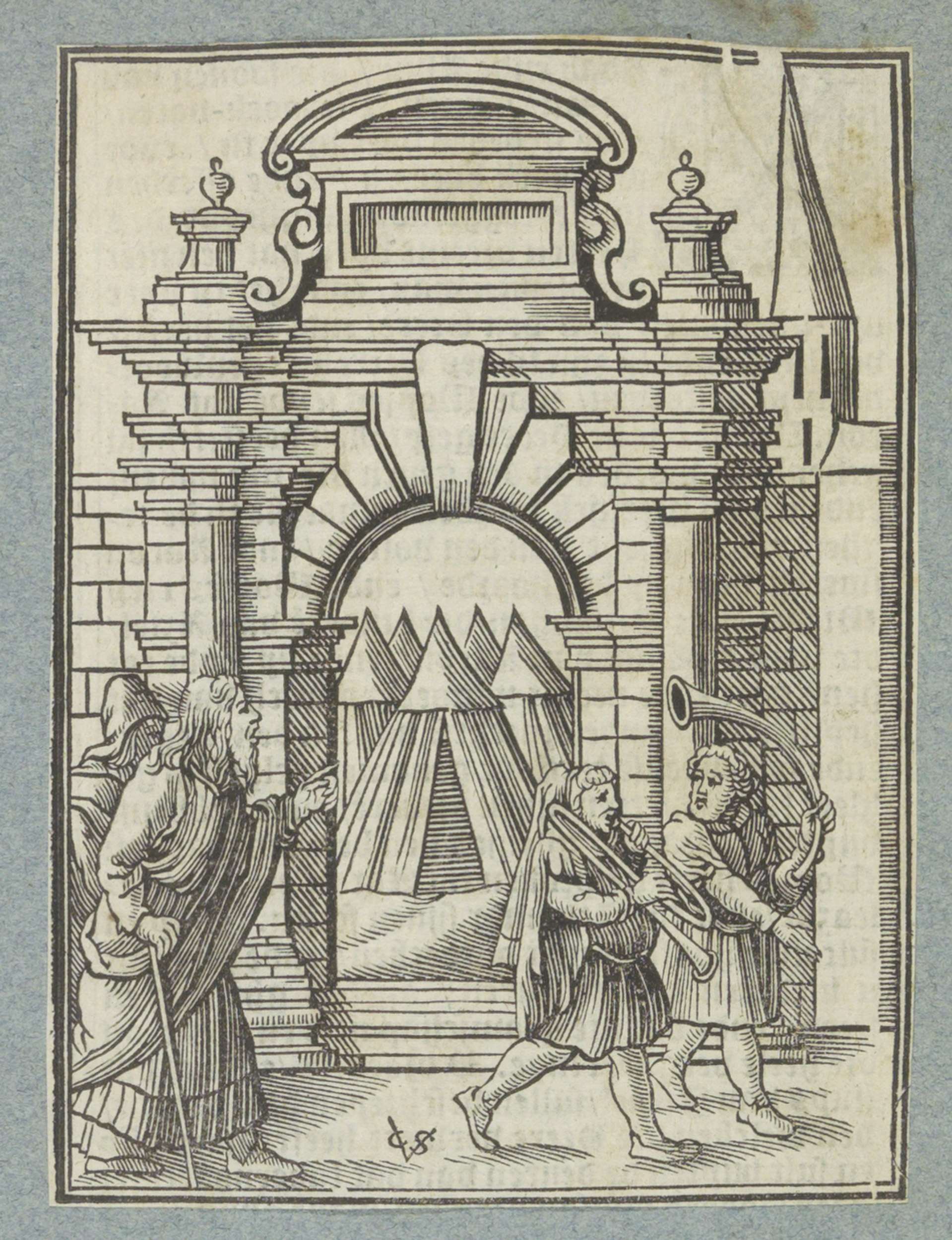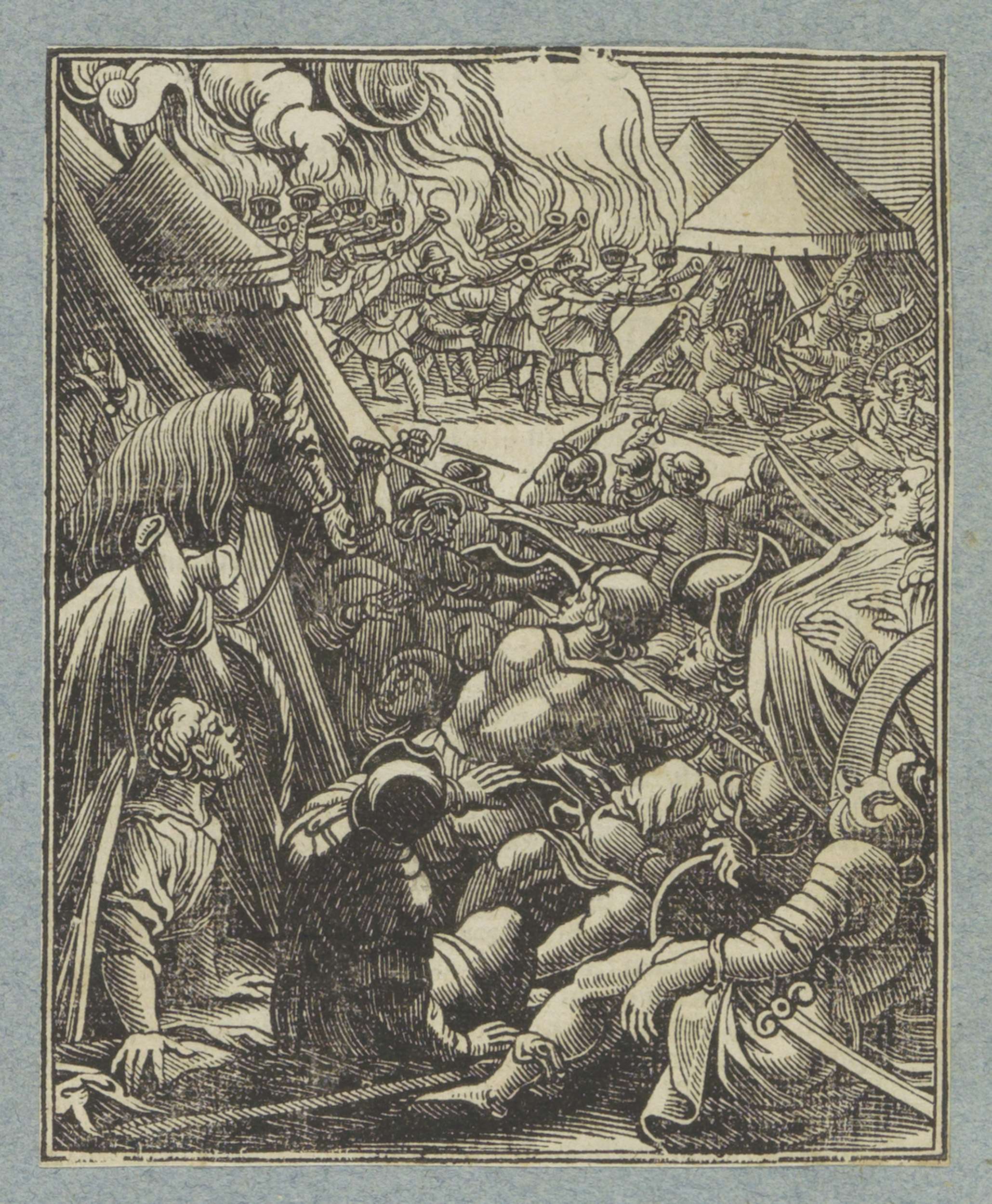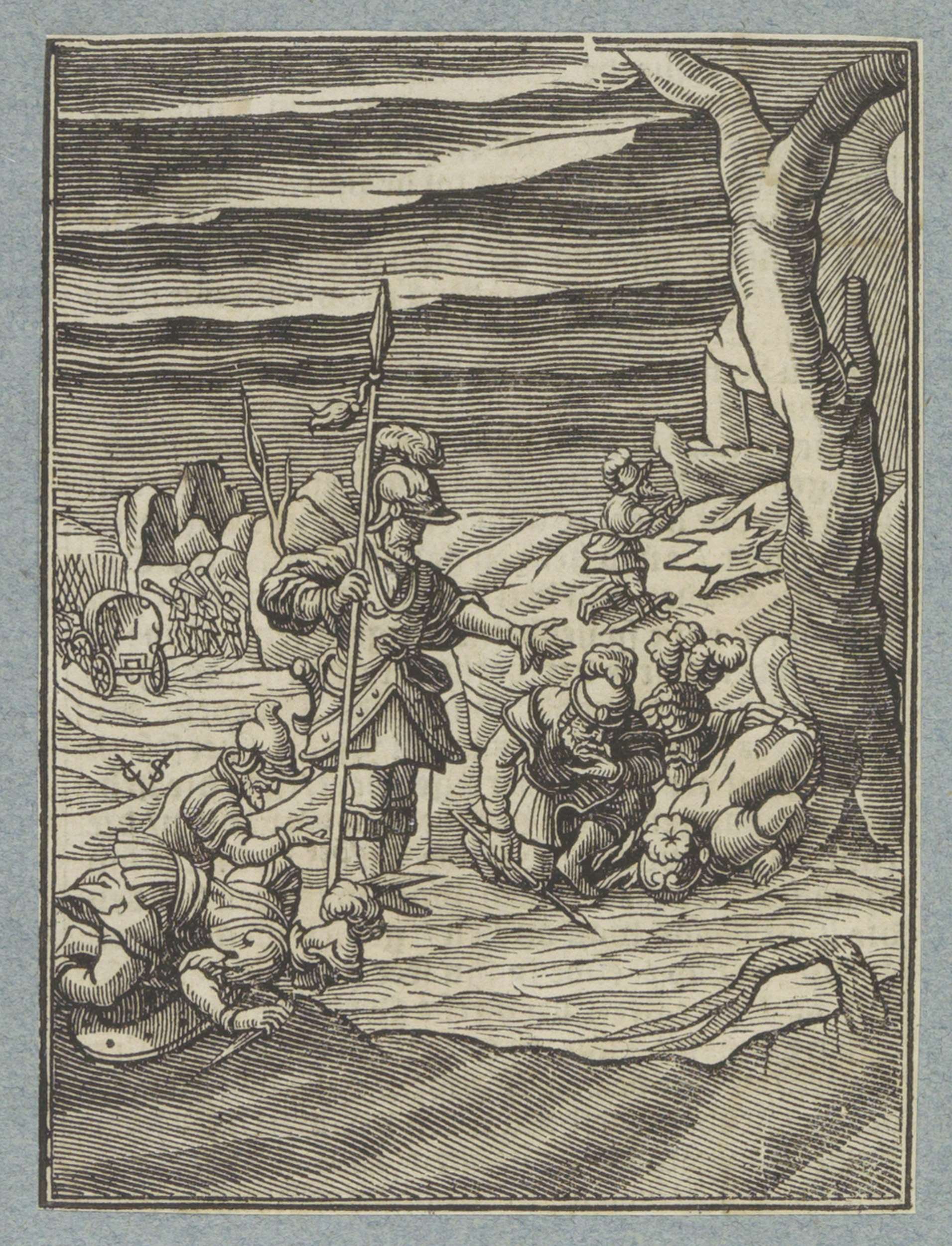 Jozua als legeraanvoerder van Israëlieten met licham...
