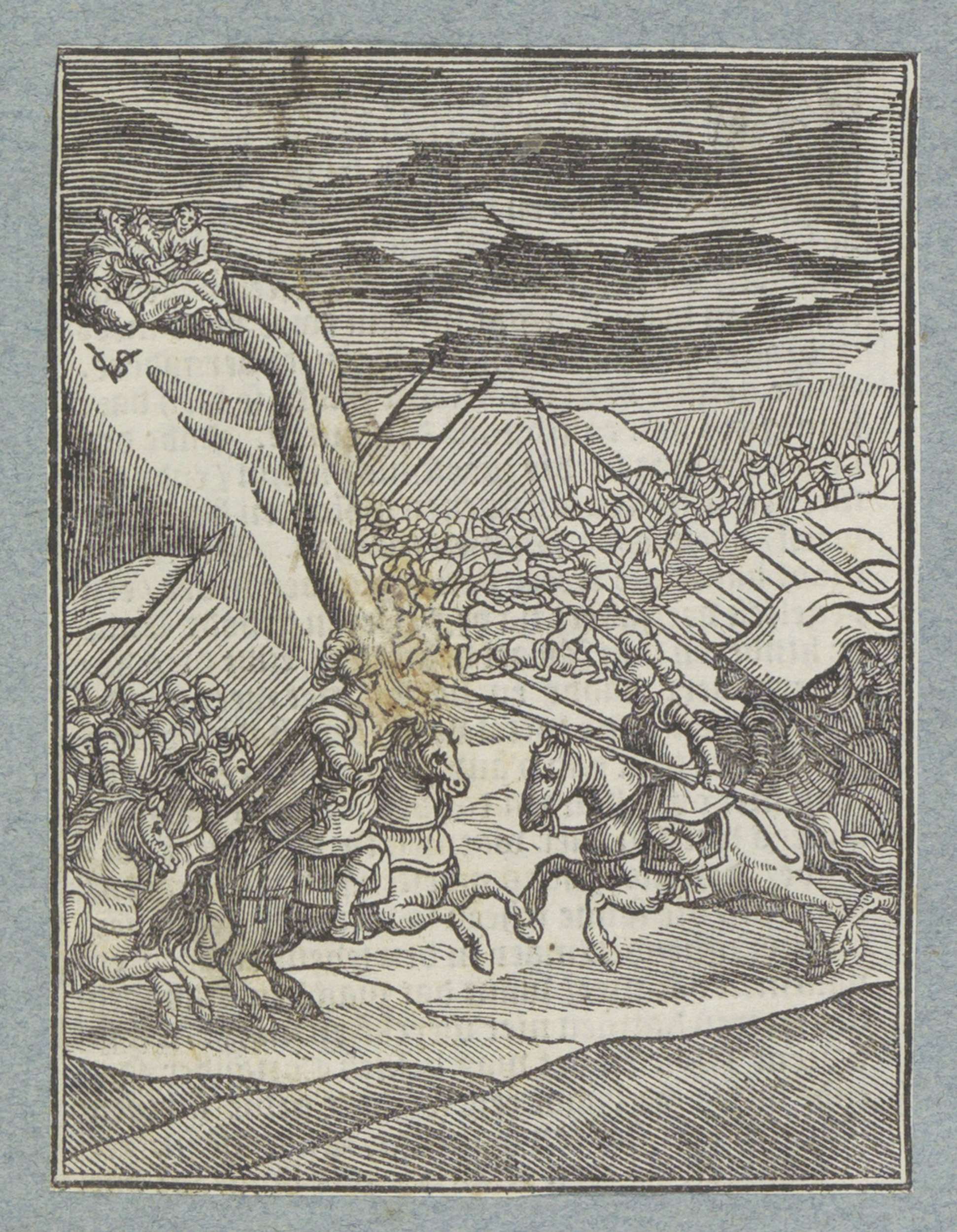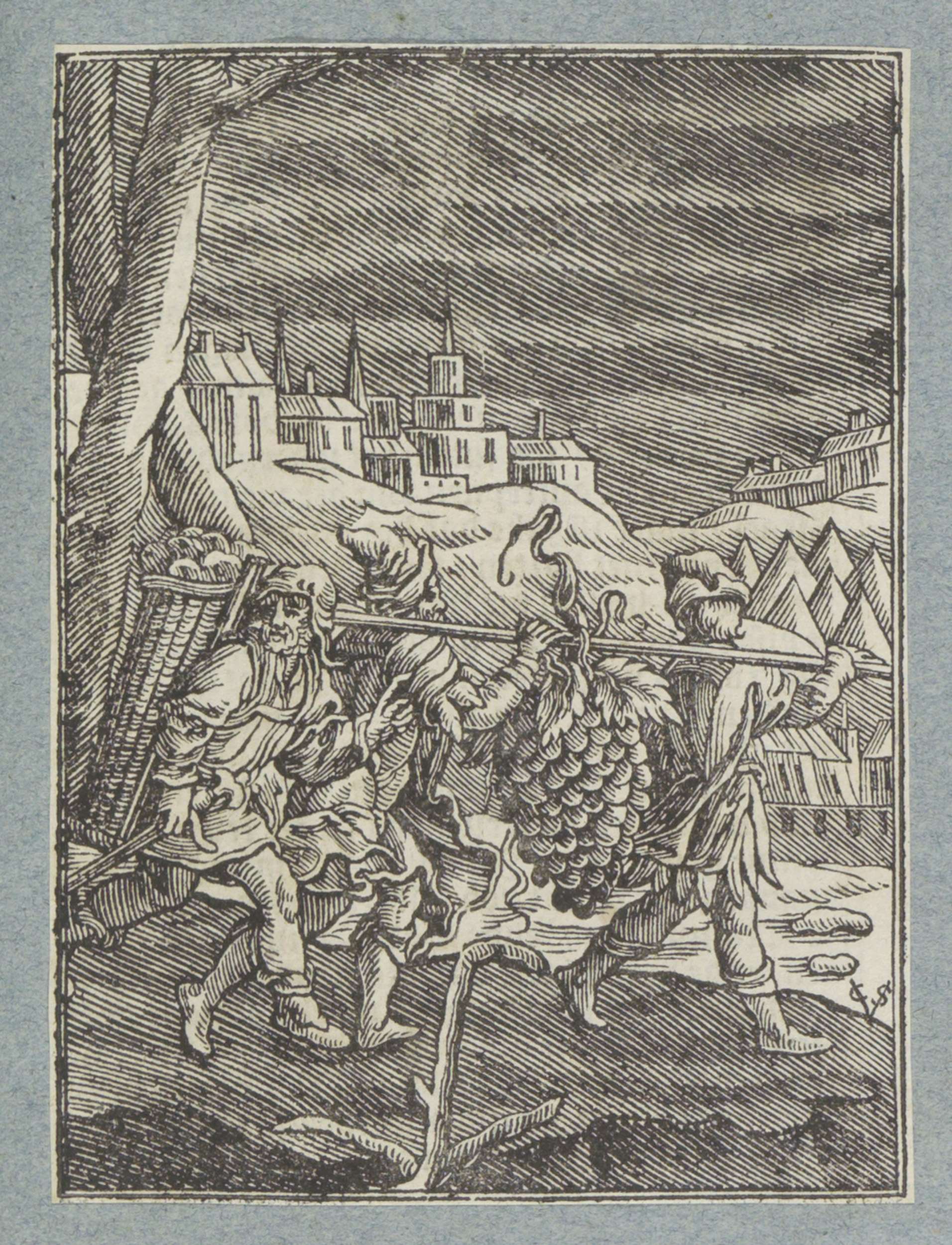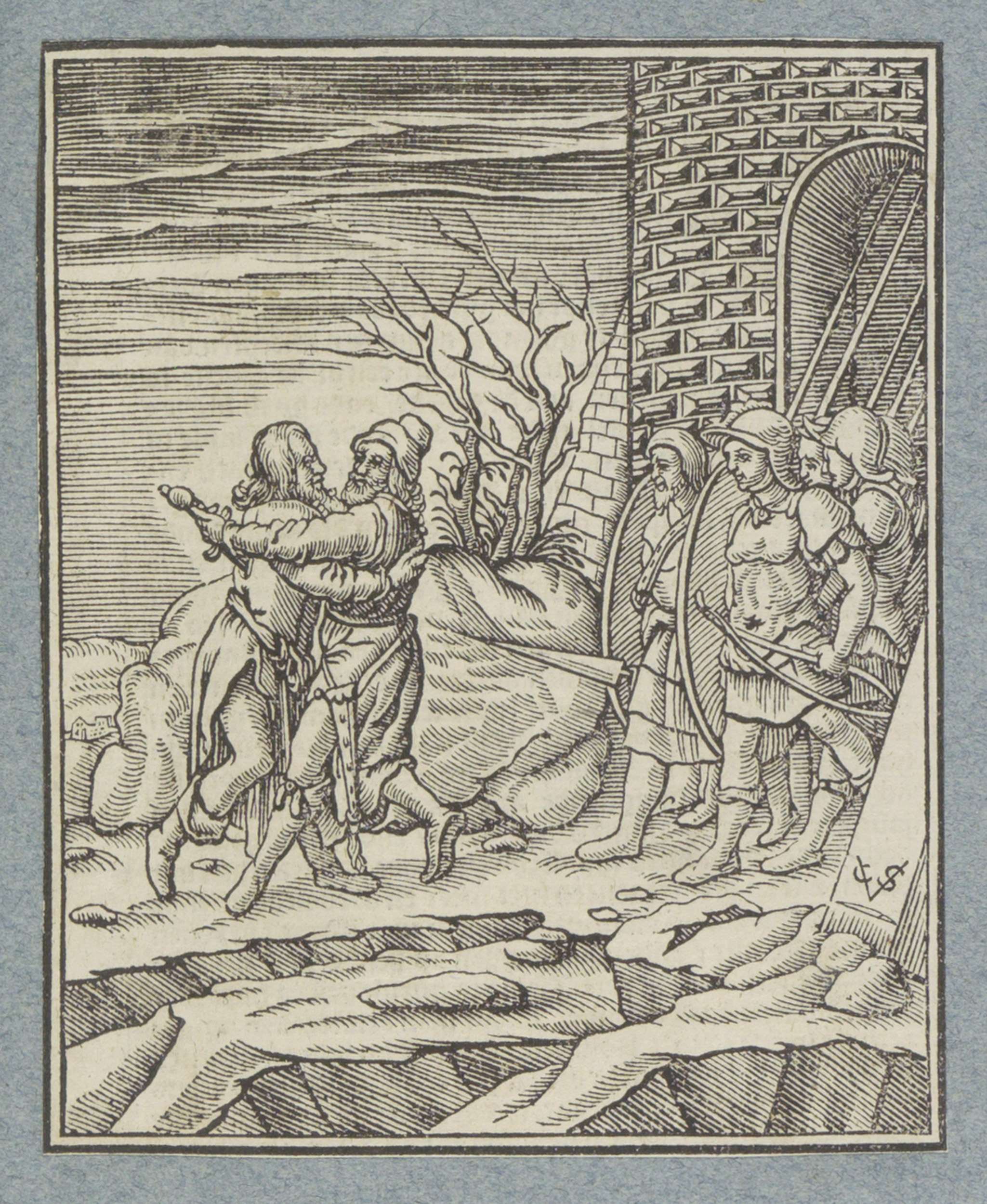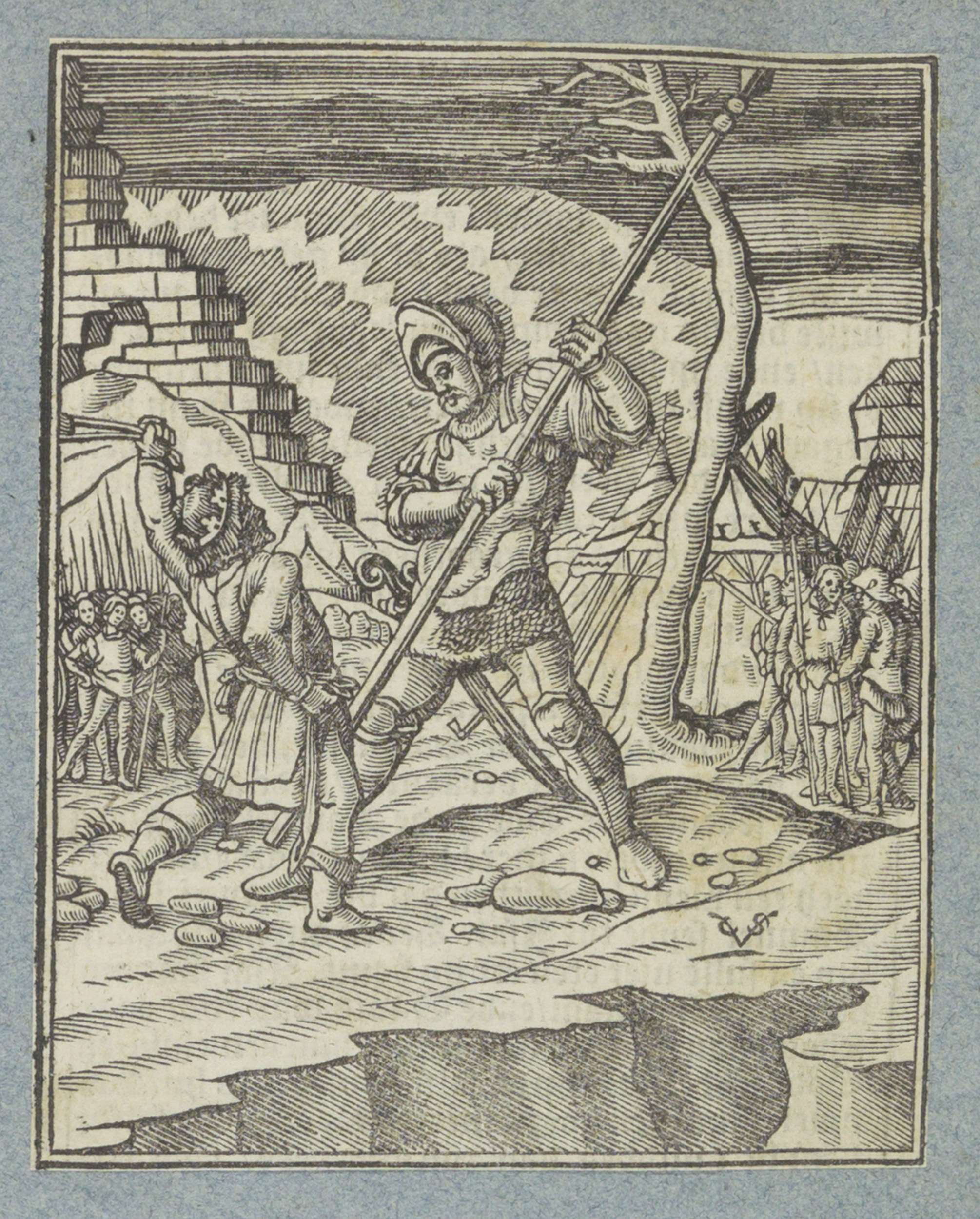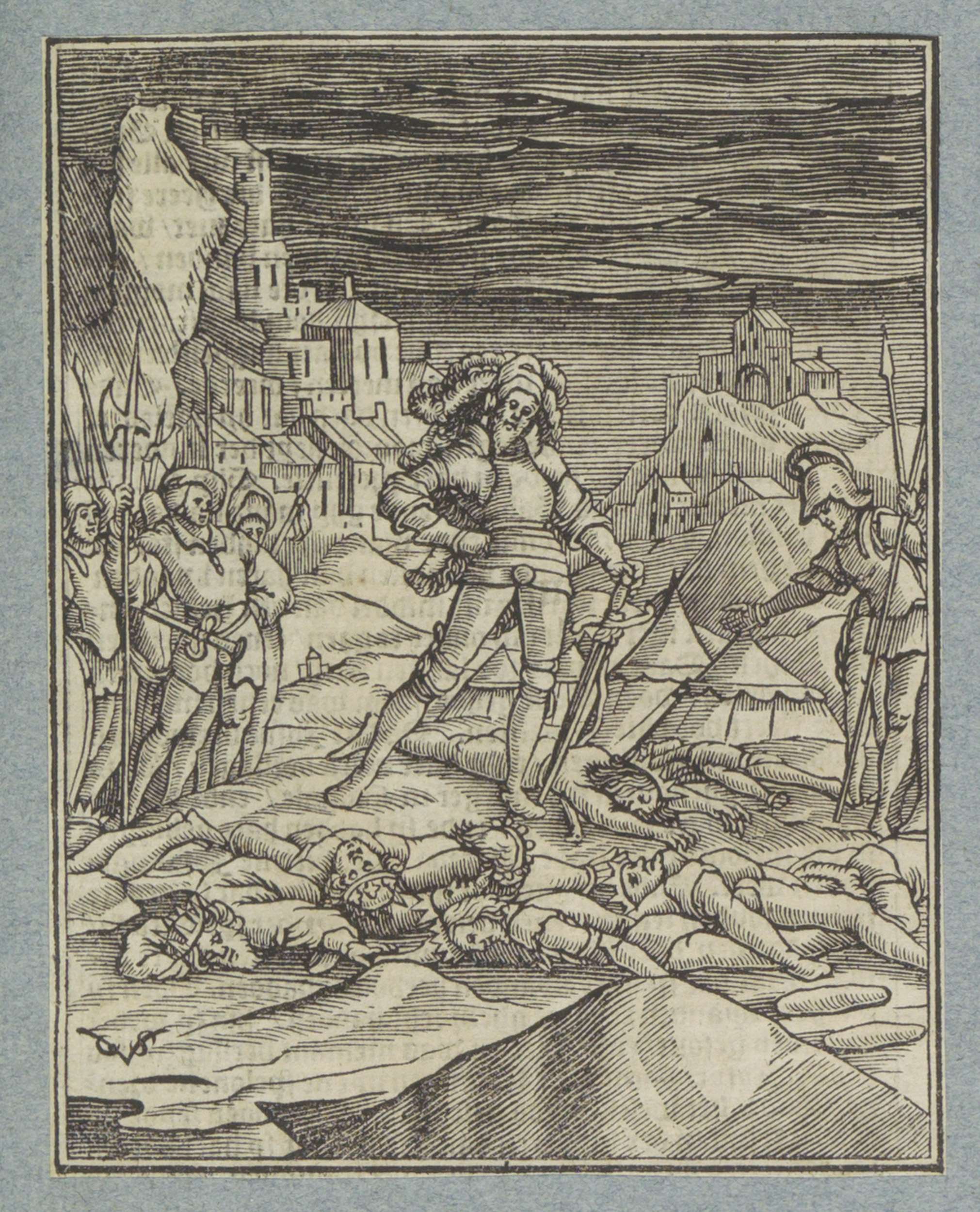 Jozua als legeraanvoerder van Israëlieten met licham...