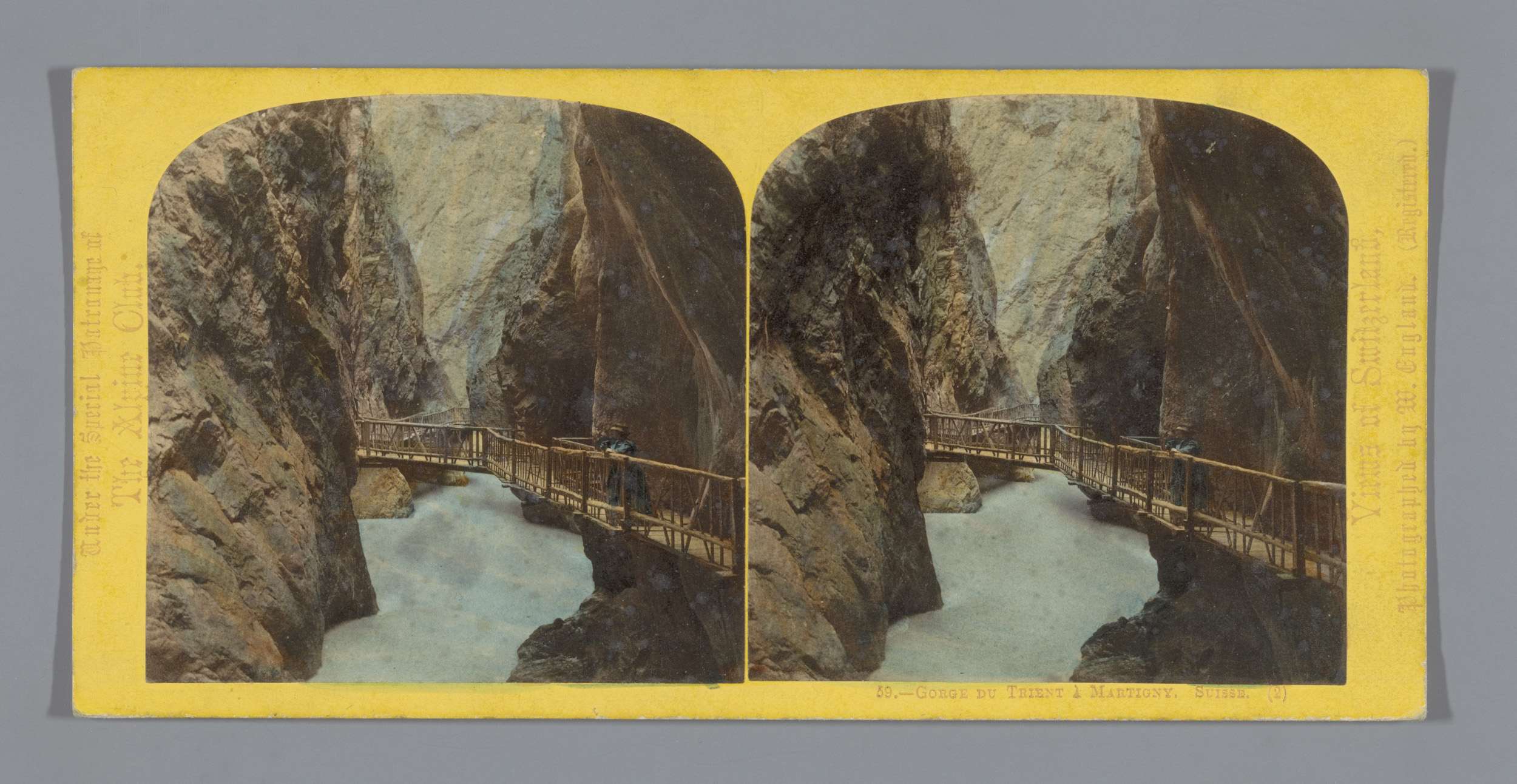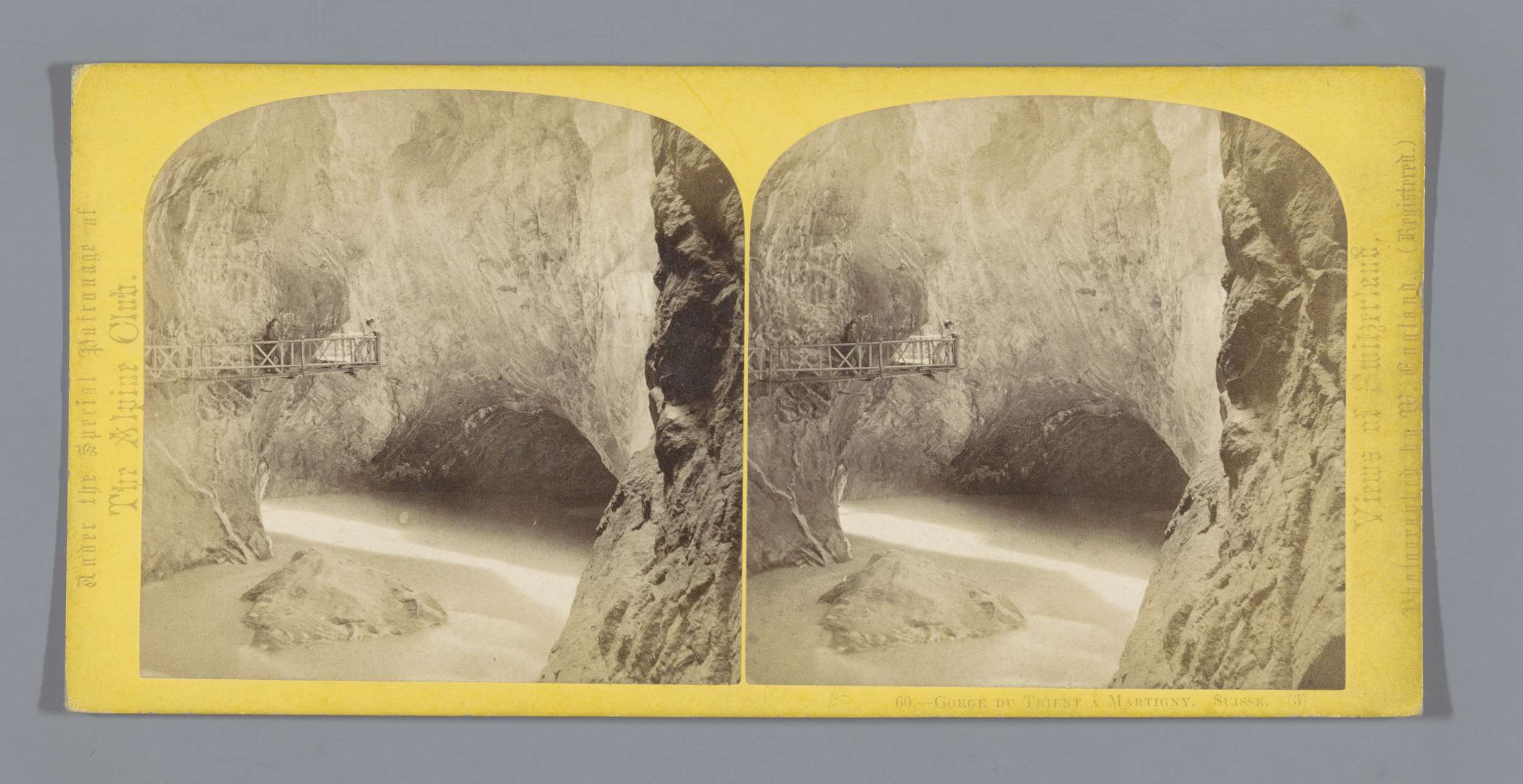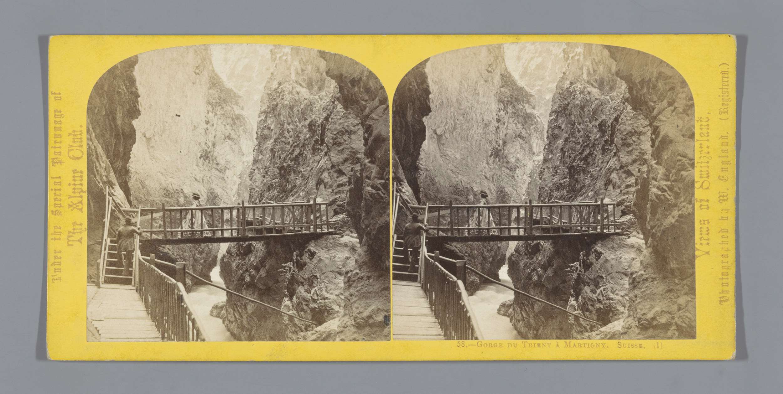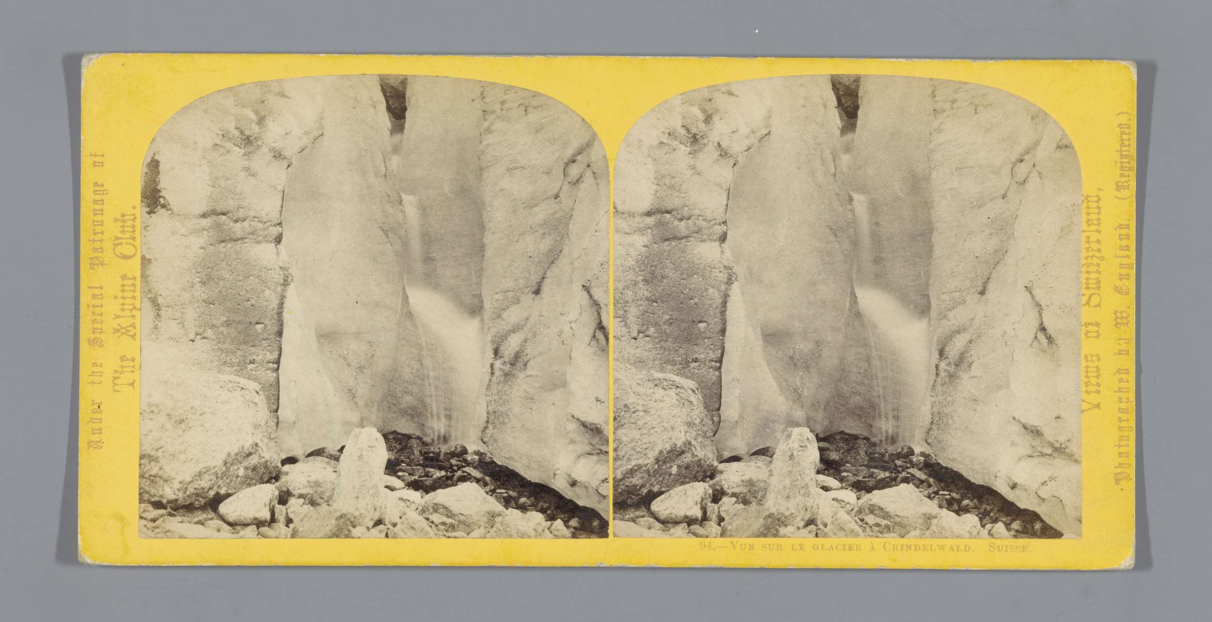 Gezicht op een waterval in een kloof nabij Rosenlaui
