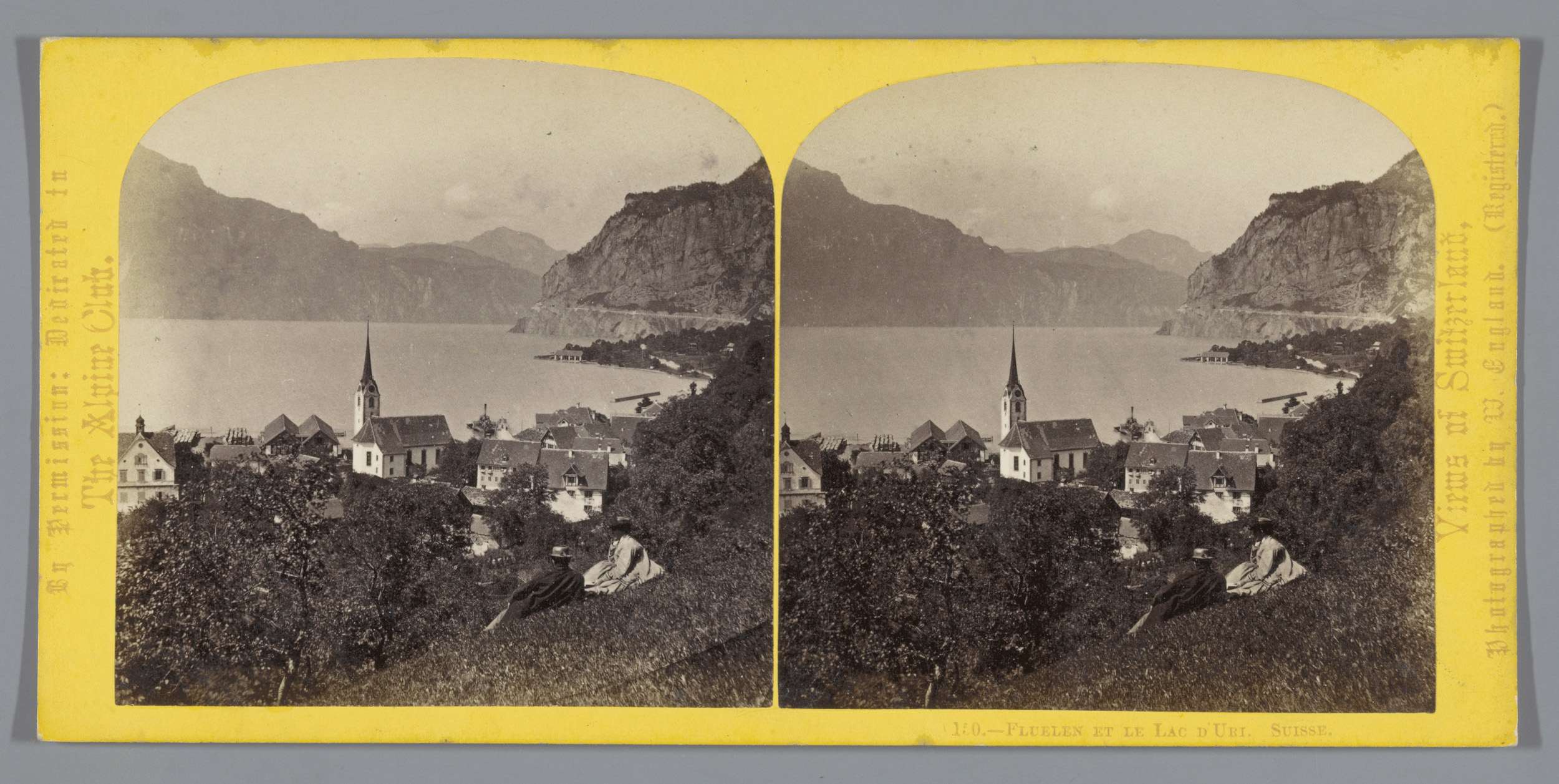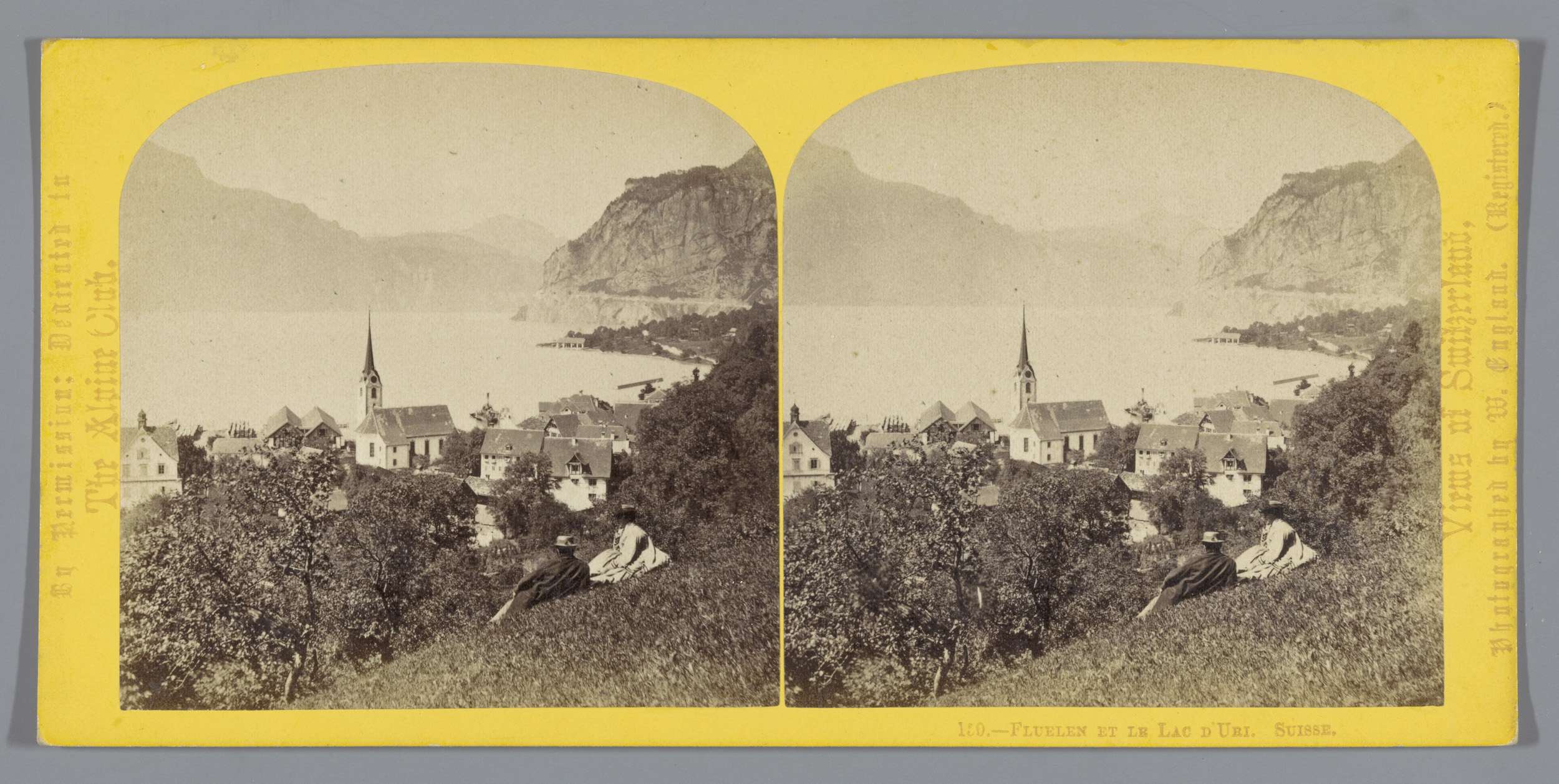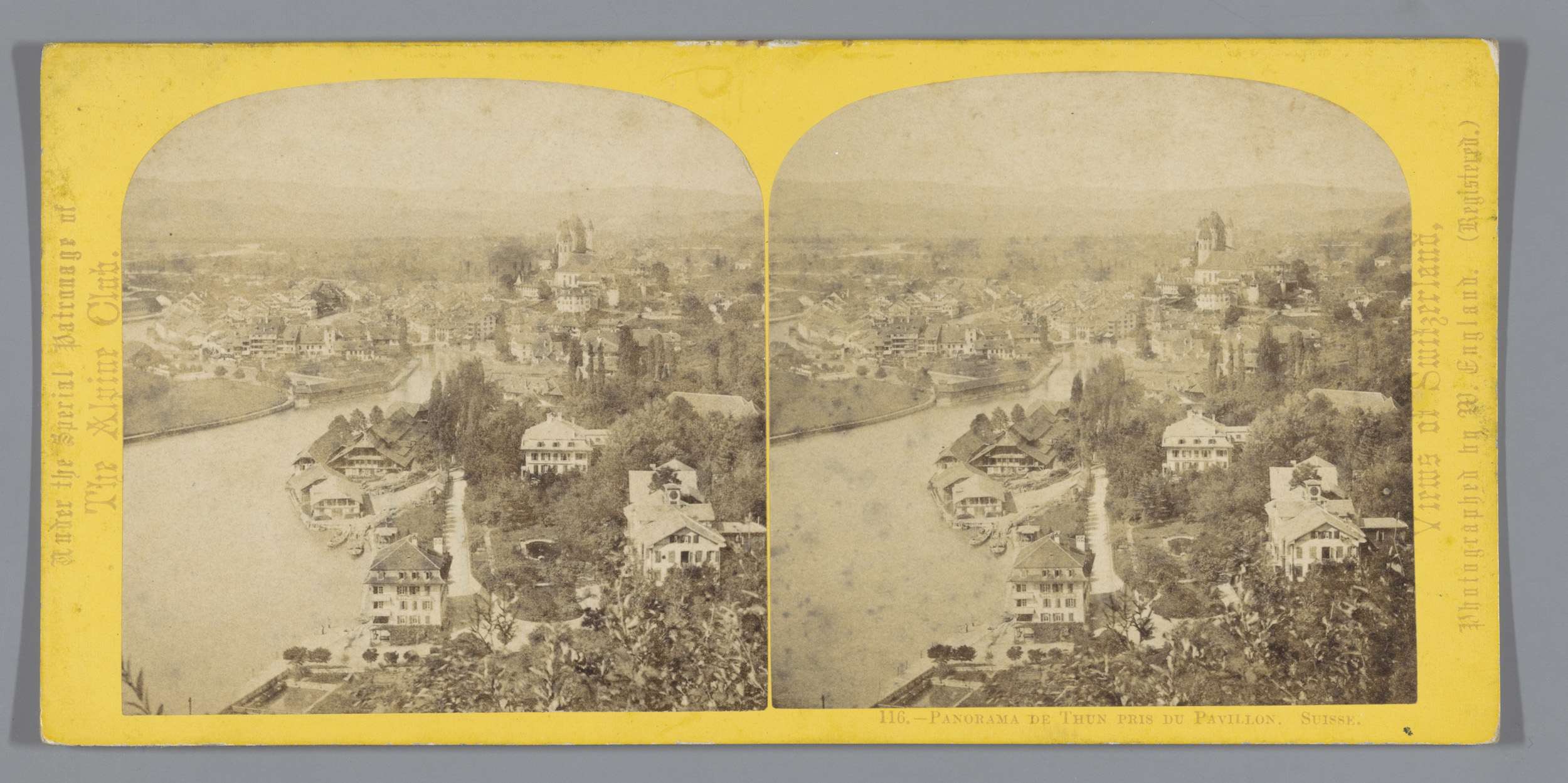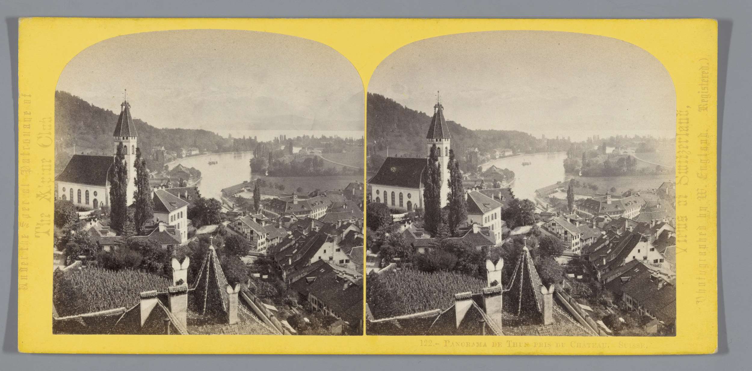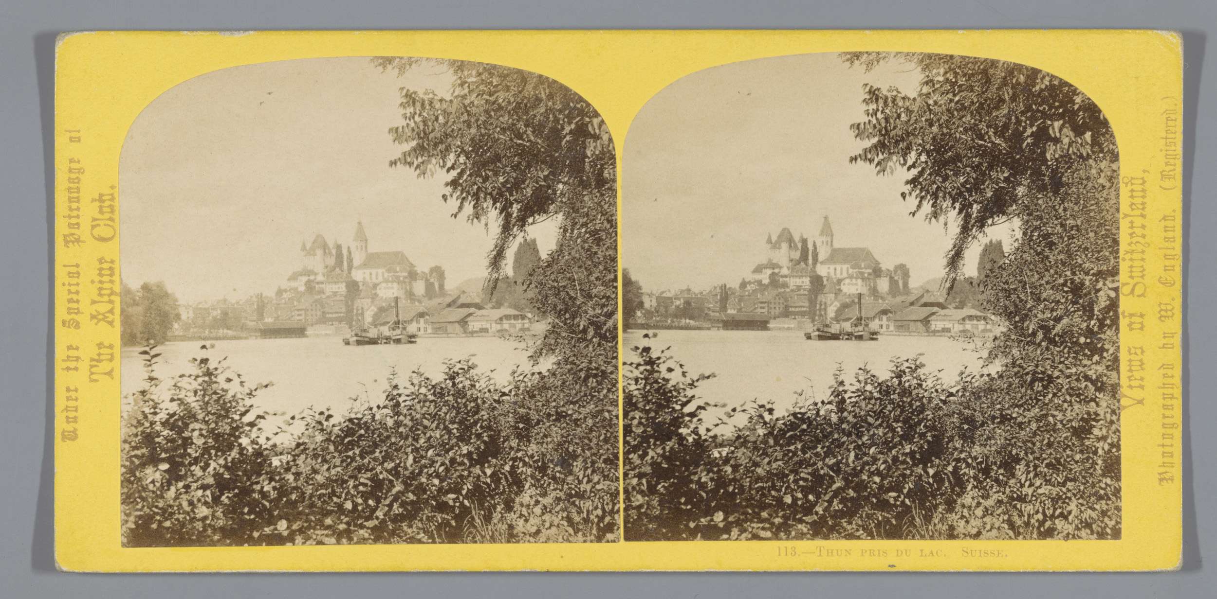 Gezicht op vanaf het Meer van Thun, met op de voorgr...