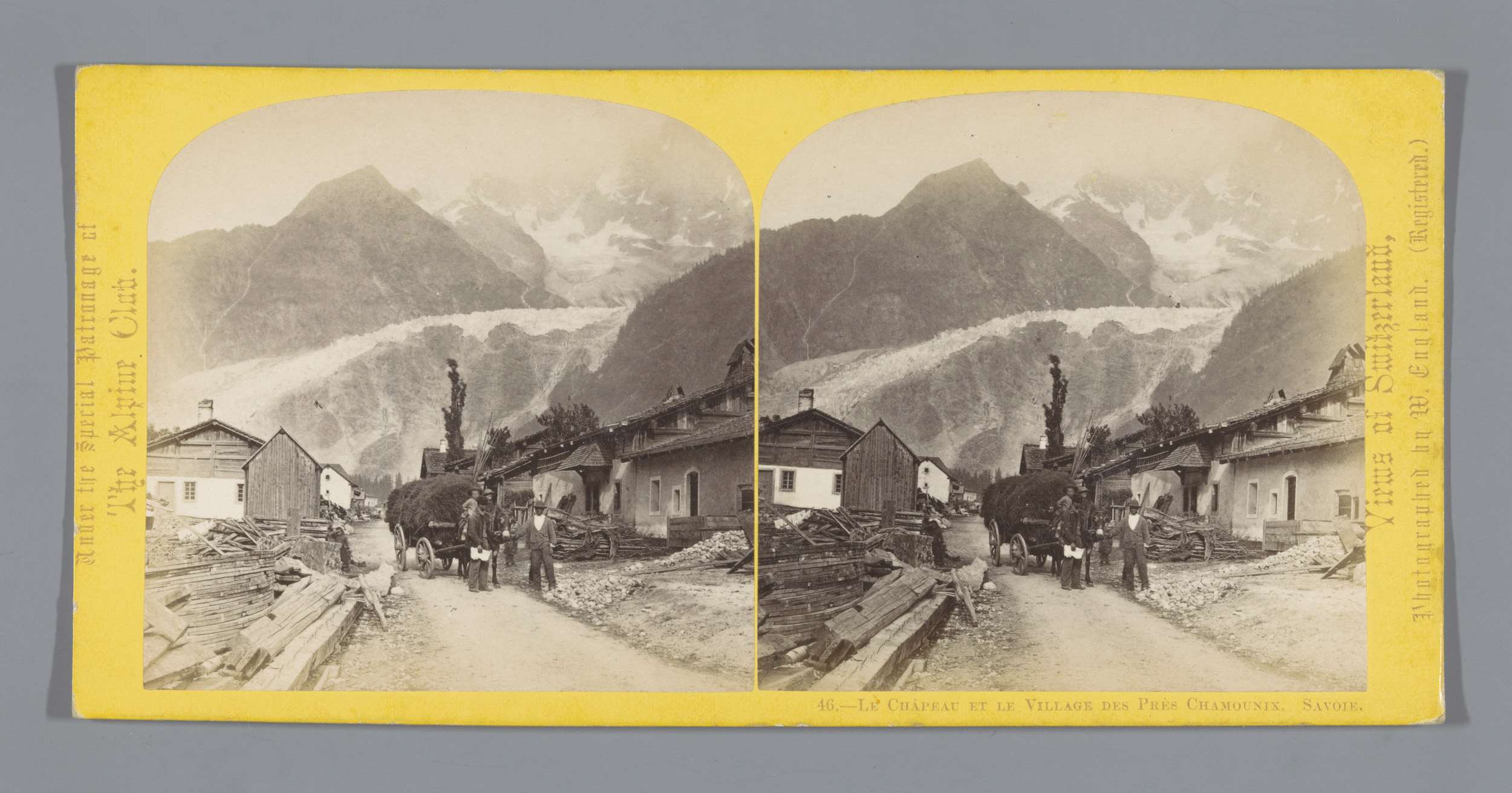Dorpsstraat nabij Chamonix, met op de achtergrond Le...