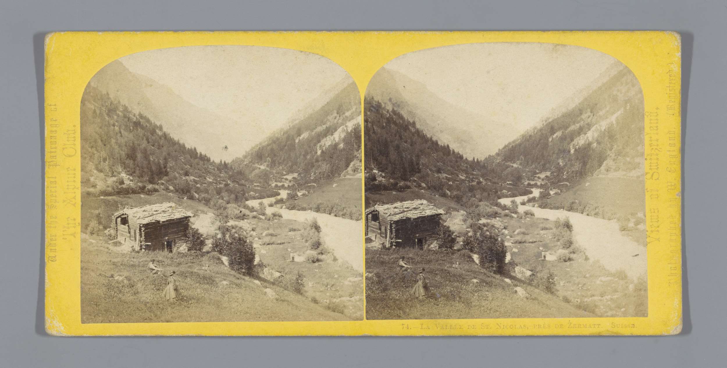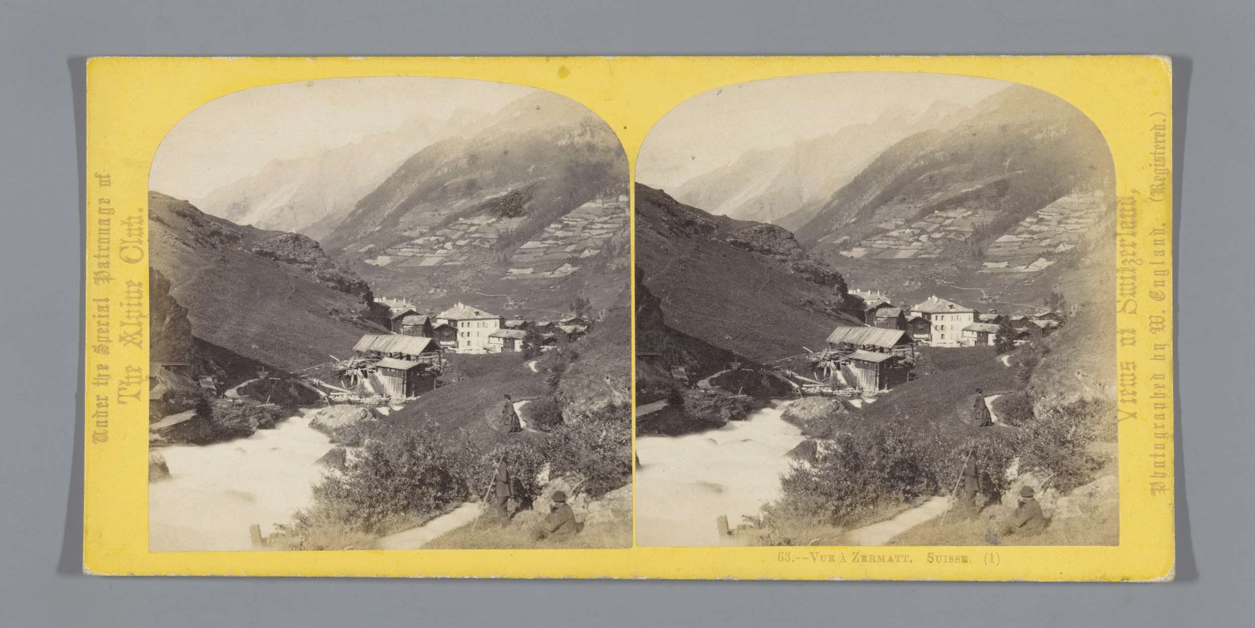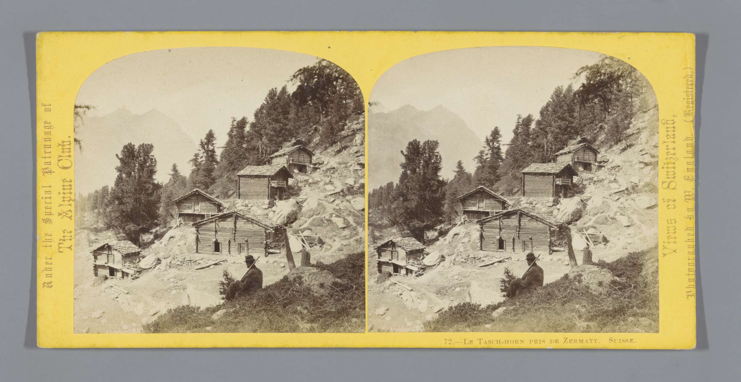 Houten gebouwen te Zermatt, met op de achtergrond de...