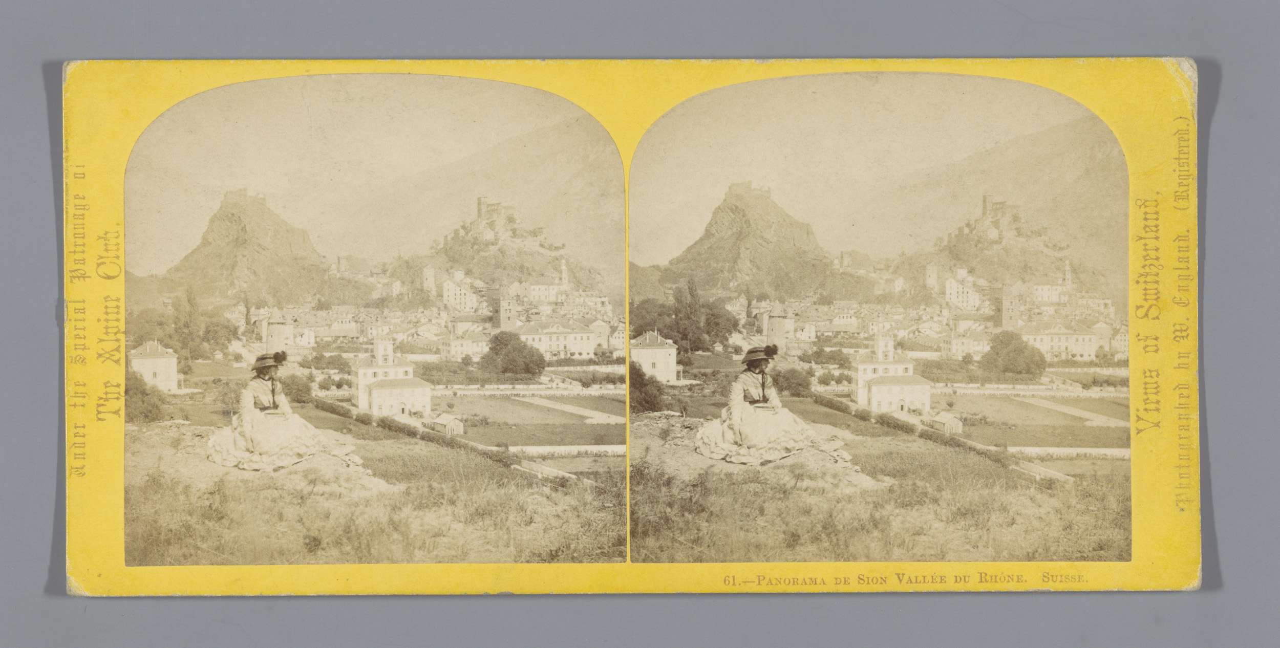 Gezicht op Sion, met op de voorgrond een zittende vrouw