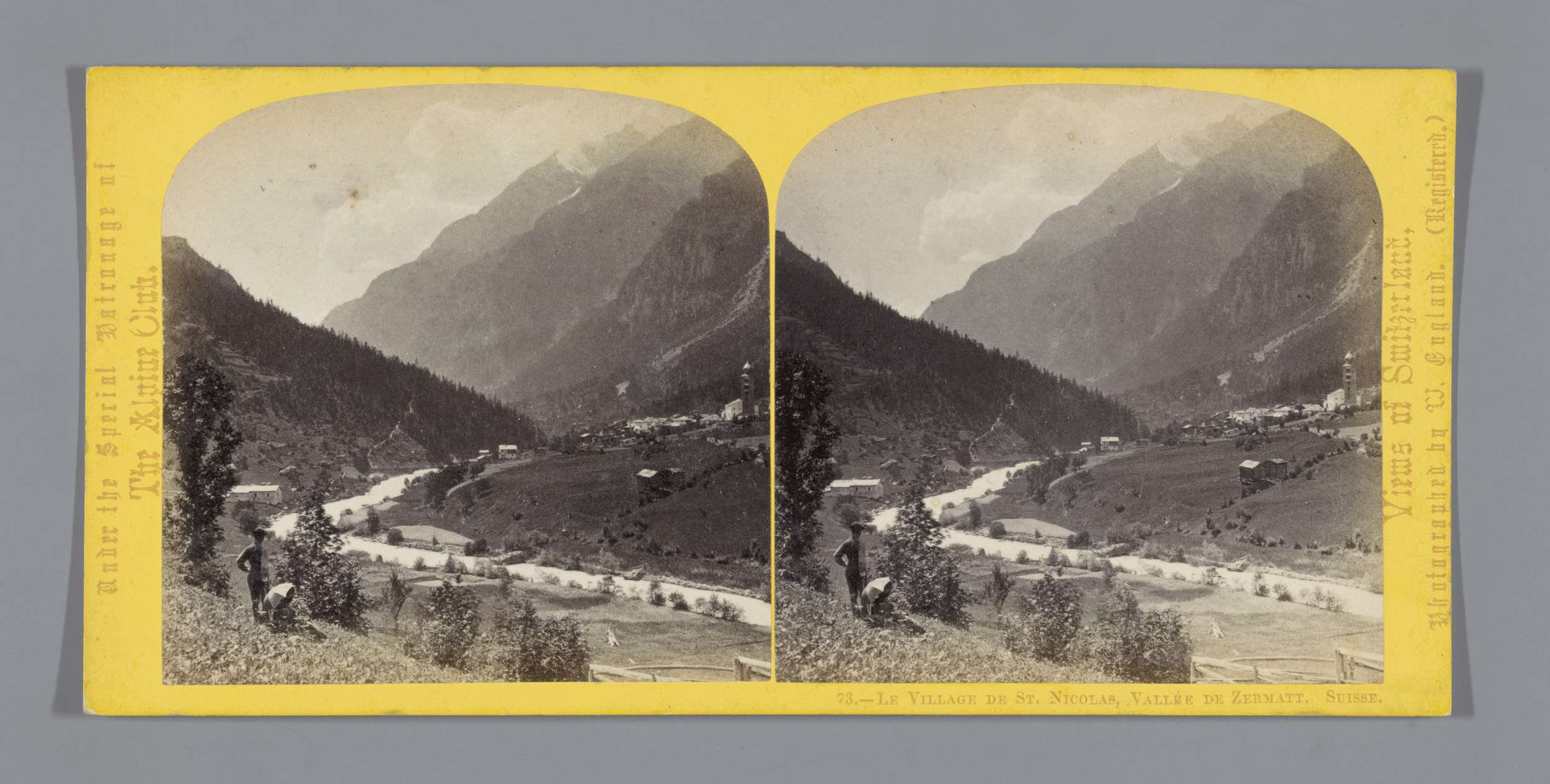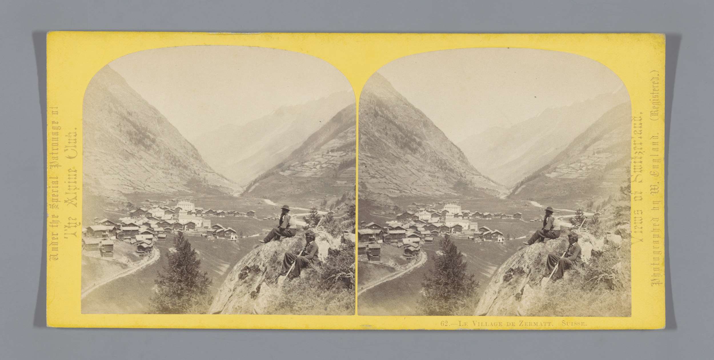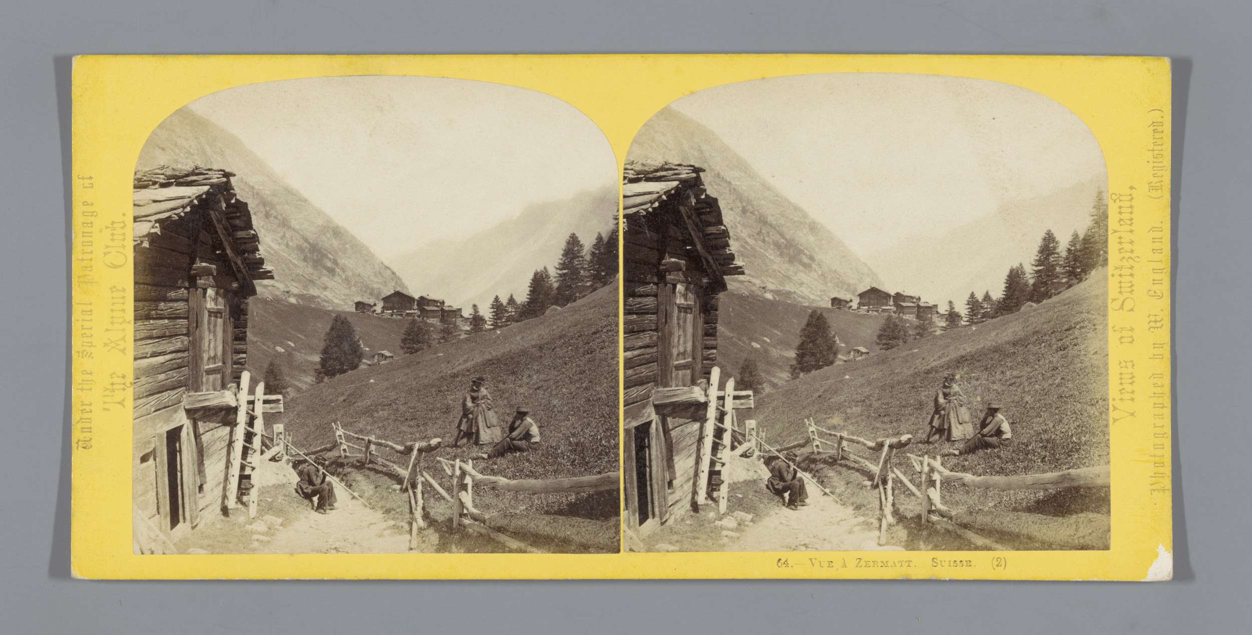 Gezicht op Zermatt, met op de voorgrond een houten g...