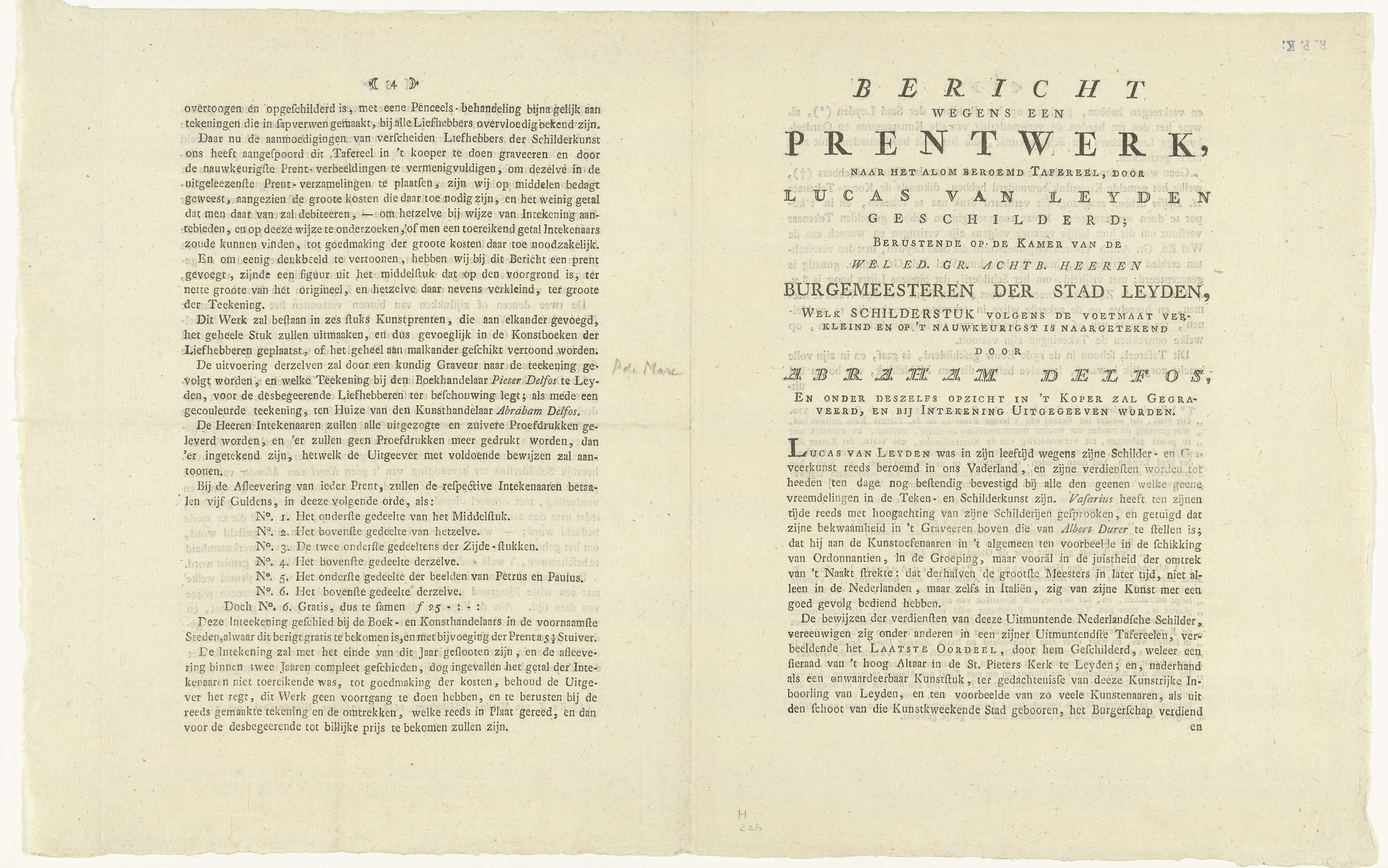 Tekstblad met beschrijving van de Katafalk met kaarsen