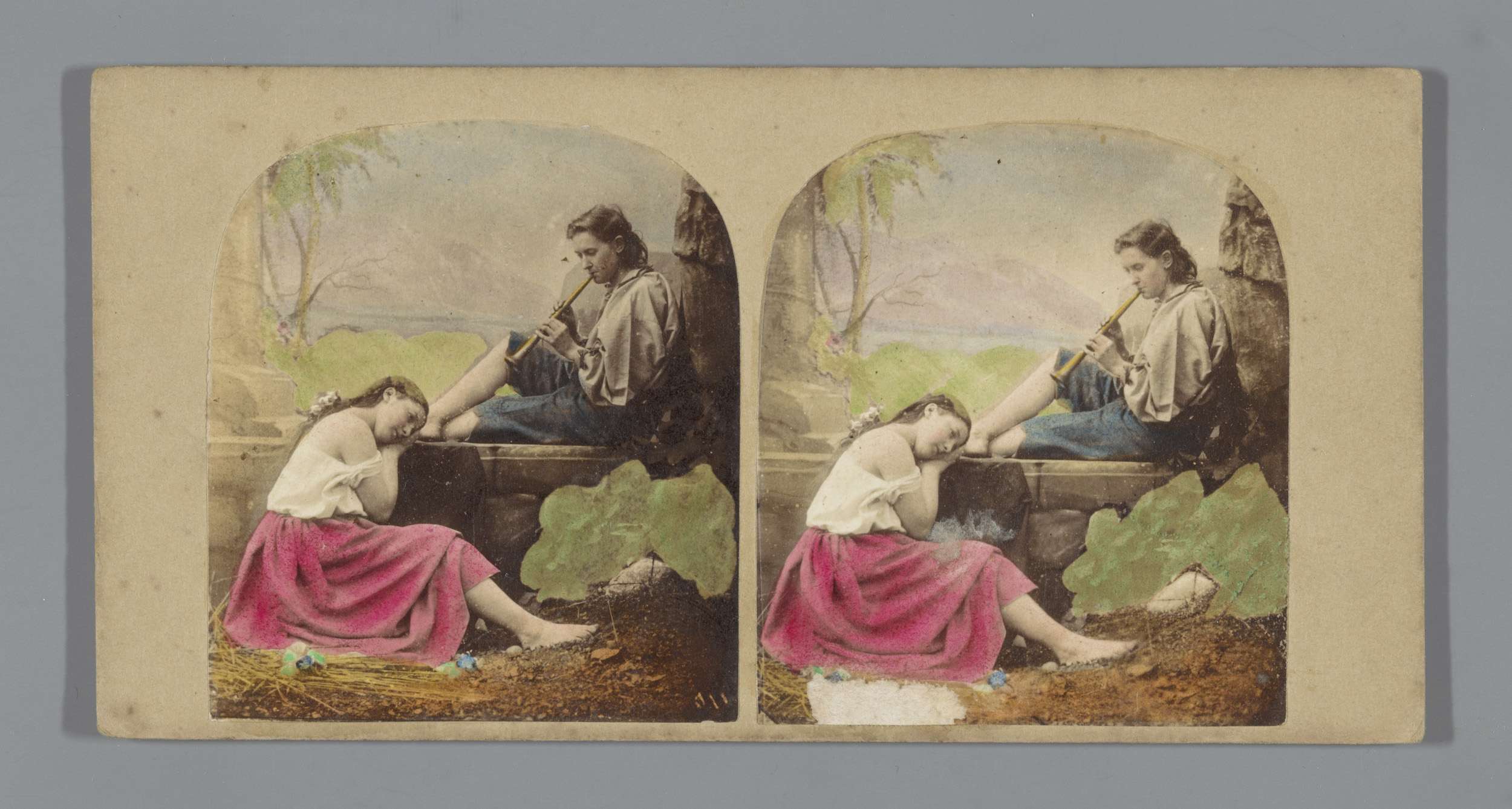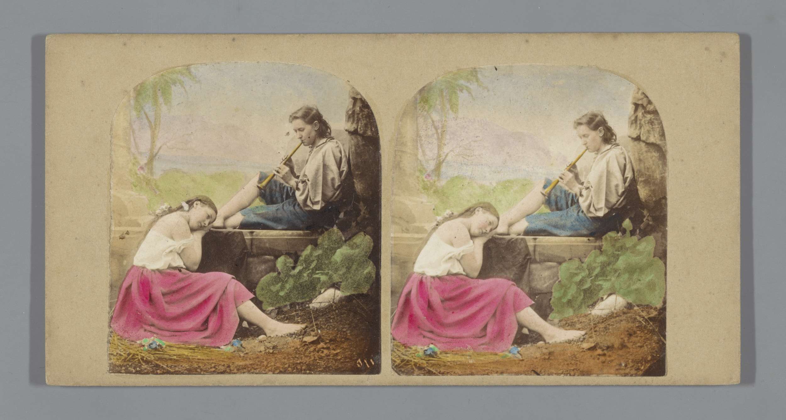 Een vrouw luistert naar een man met een panfluit