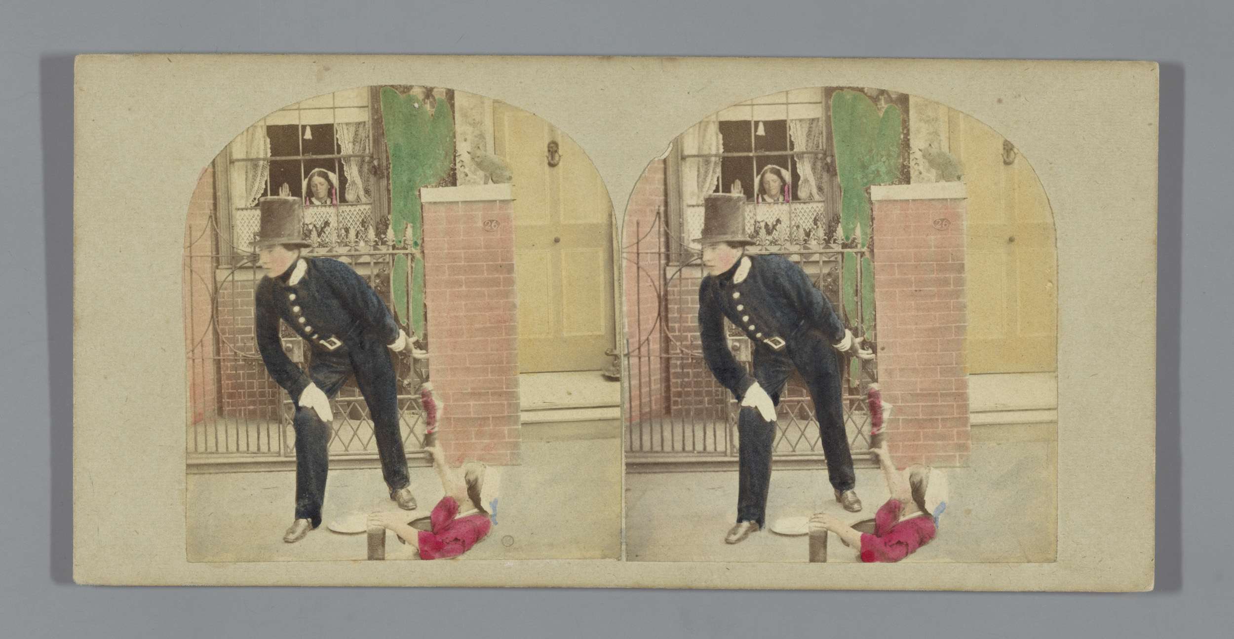 Vrouw zwaait naar een man vanuit een put
