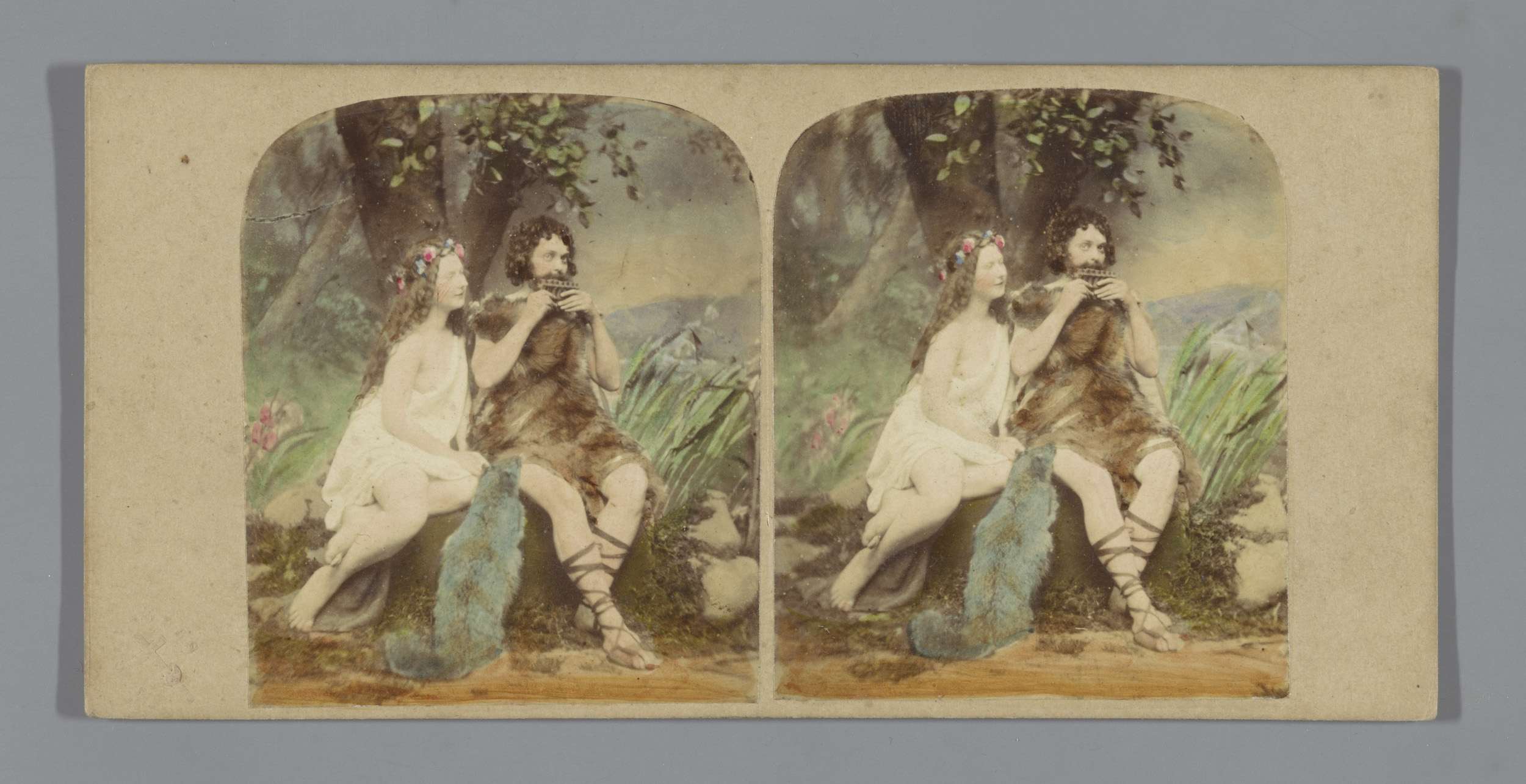 Tafereel in een bos met twee mannen en een vrouw ach...