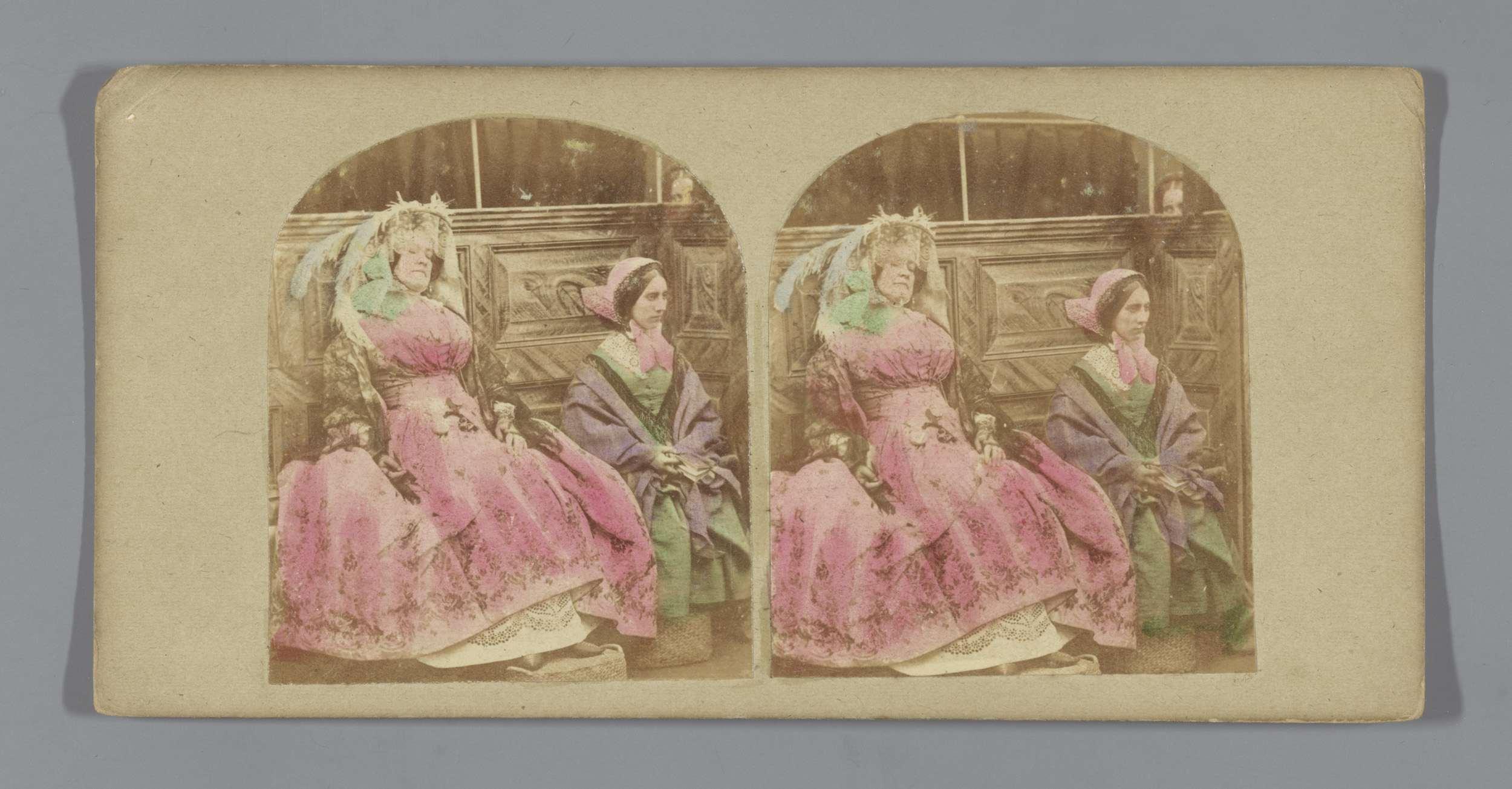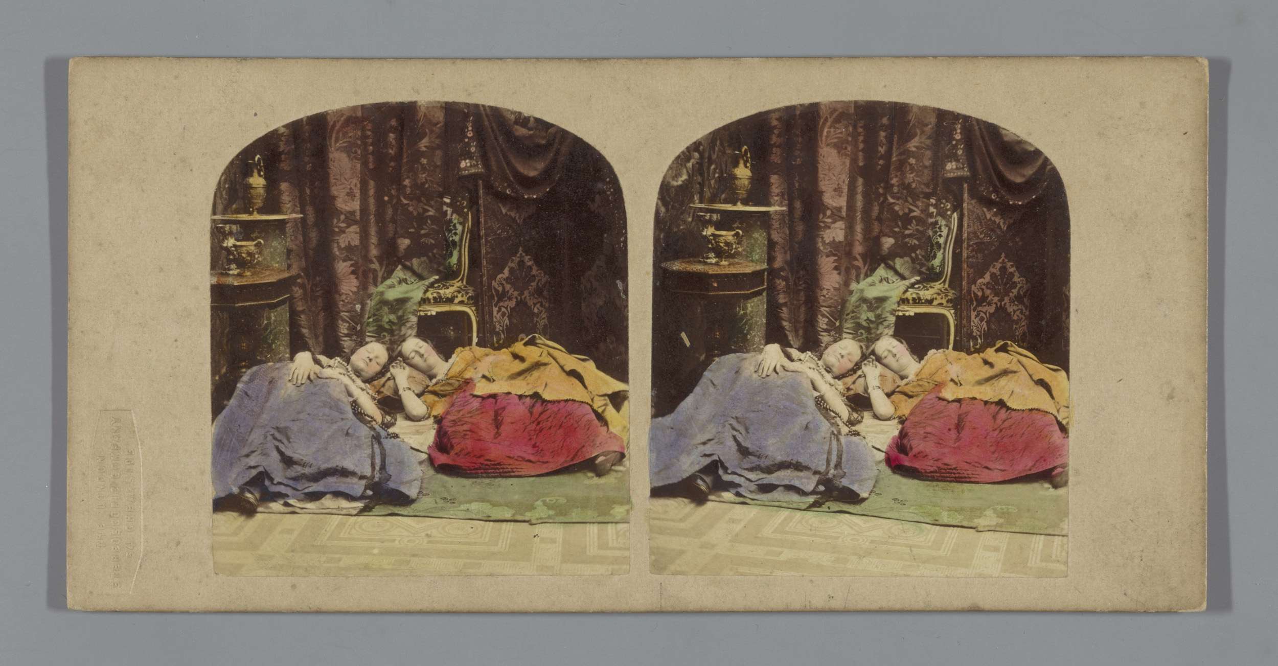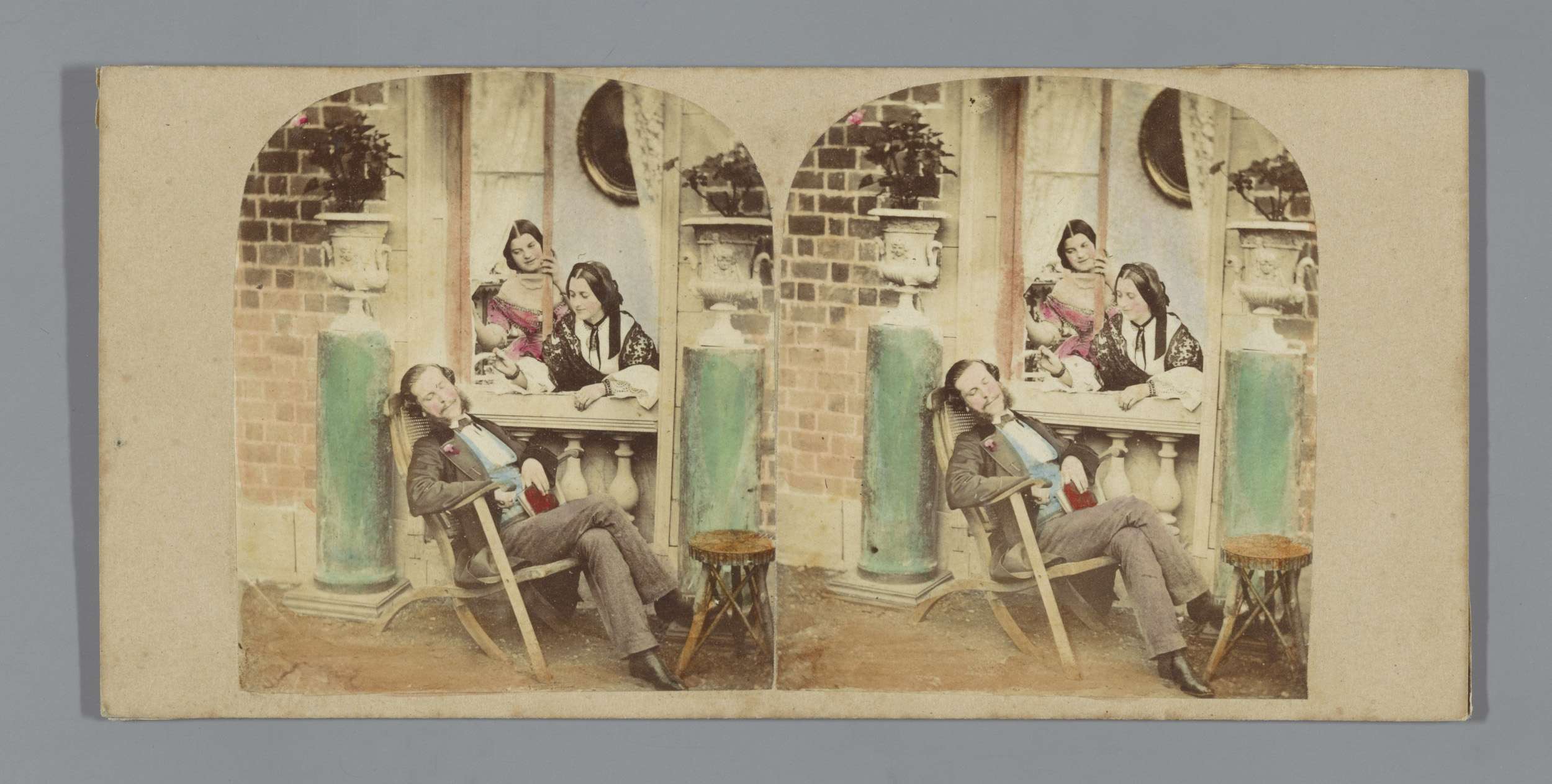 Twee vrouwen plagen een slapende man
