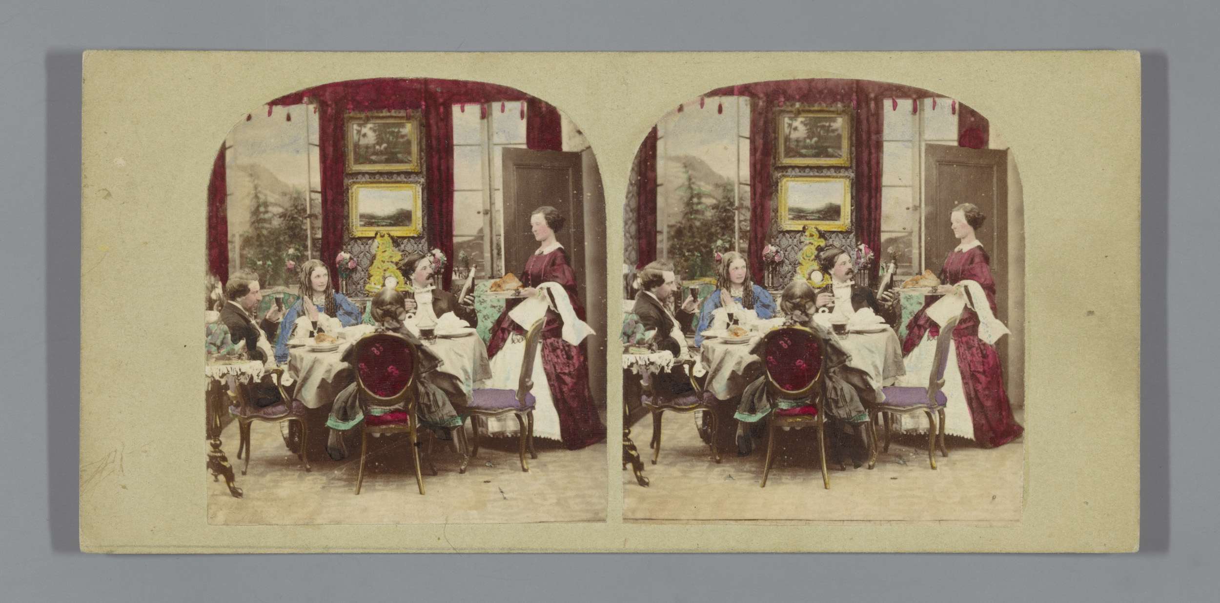 Proostend gezelschap rond een eettafel
