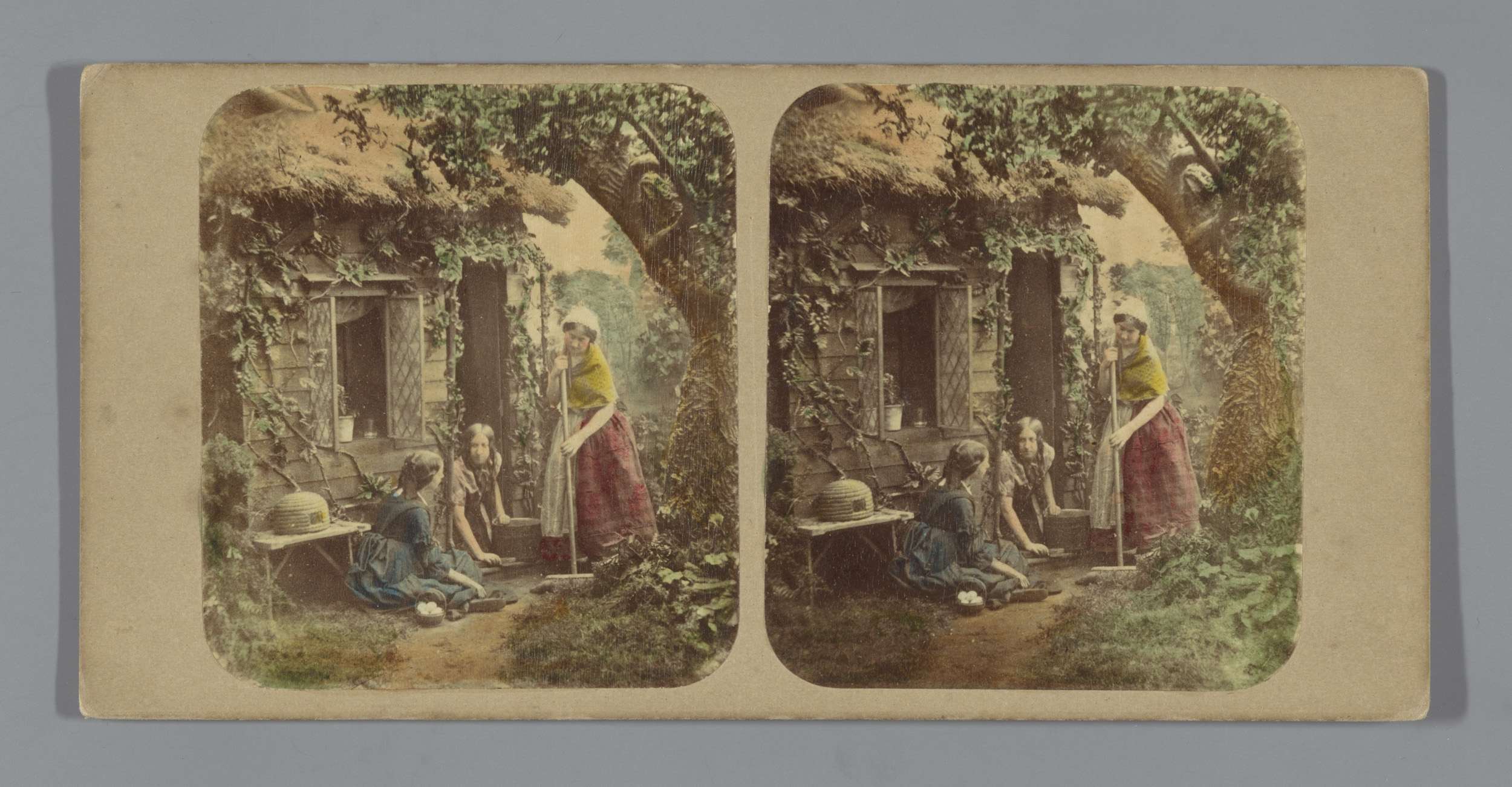 Drie vrouwen voor een cottage