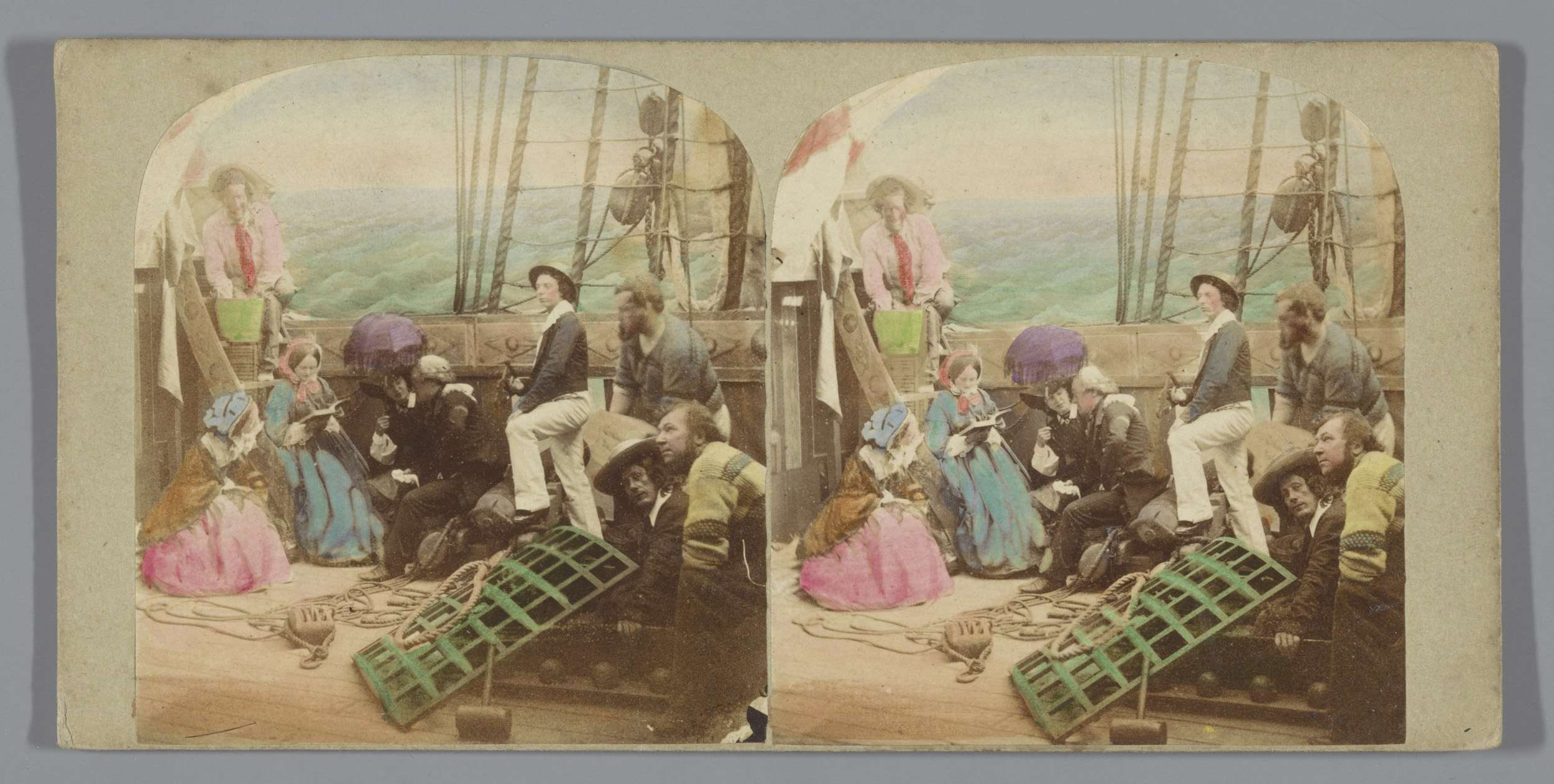 Reizigers op een scheepsdek