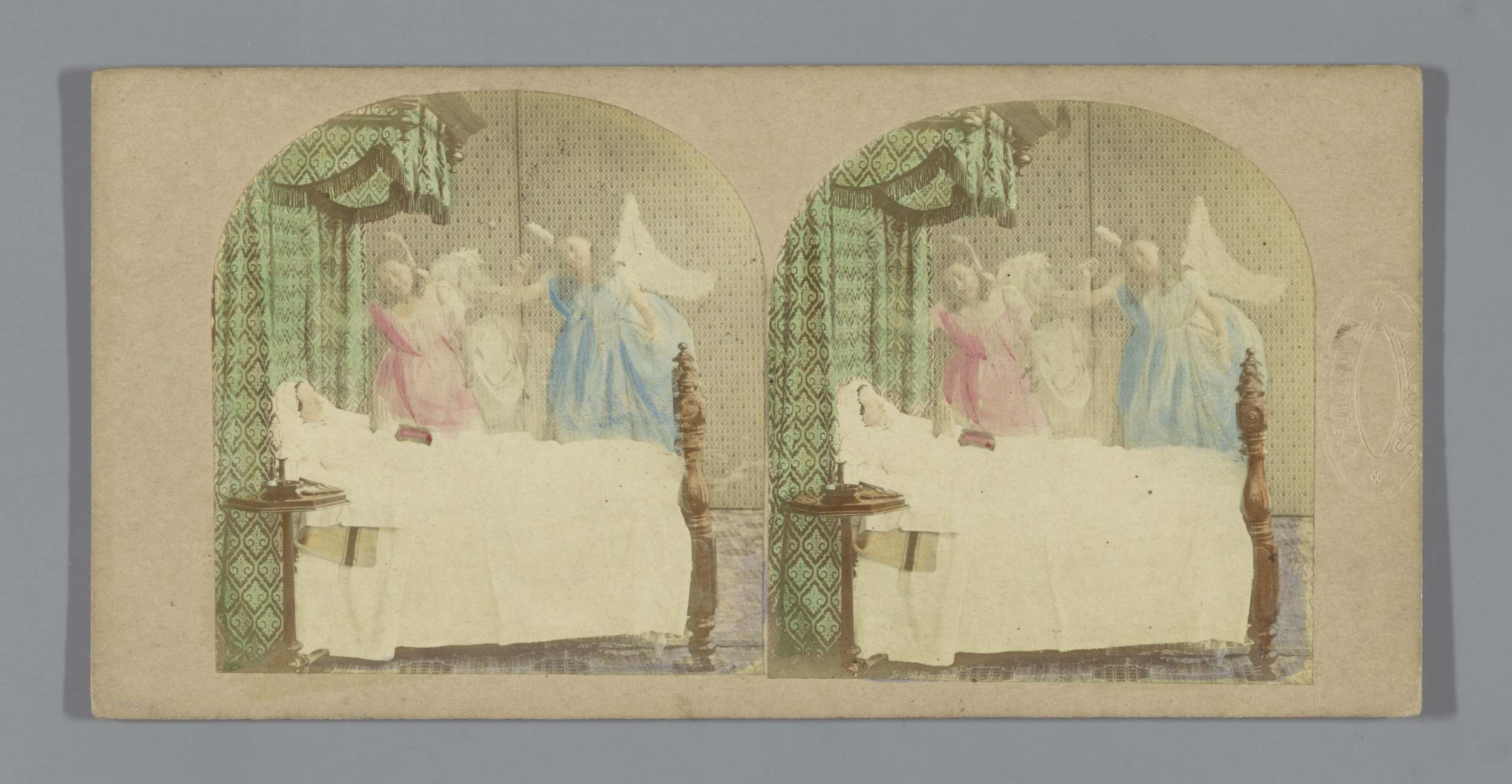 Vrouw in bed wordt bezocht door engelen