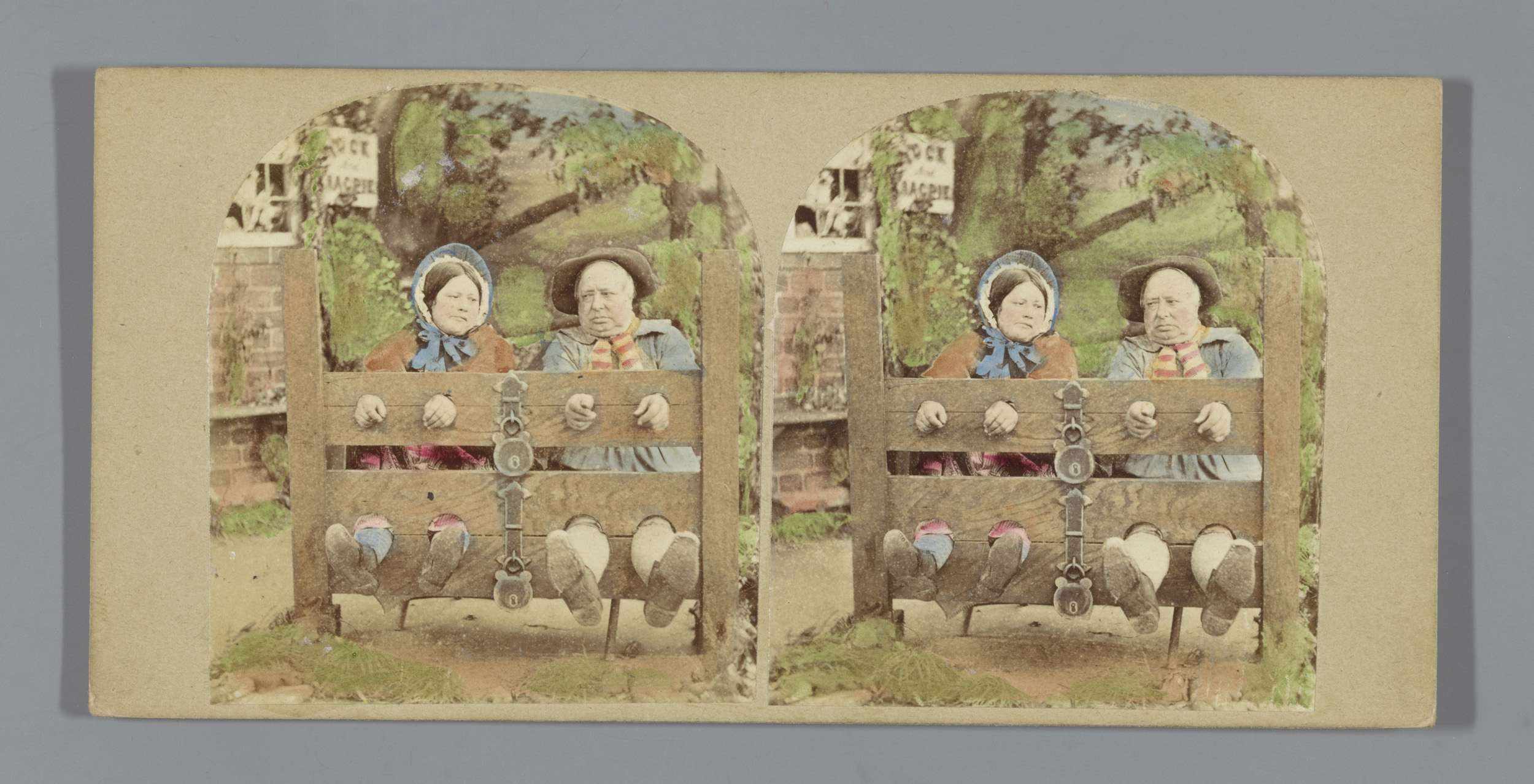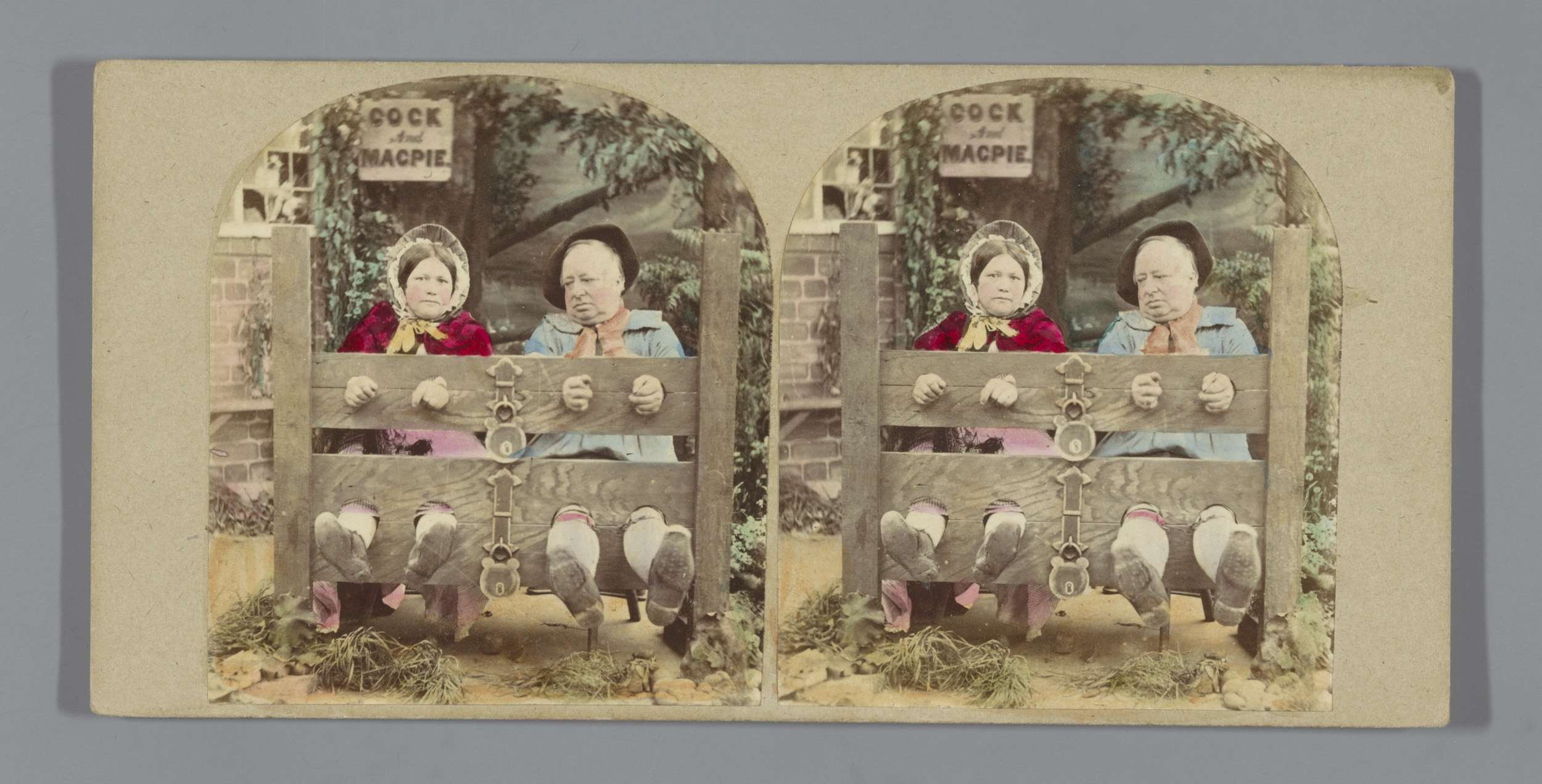 Twee personen aan een schandblok