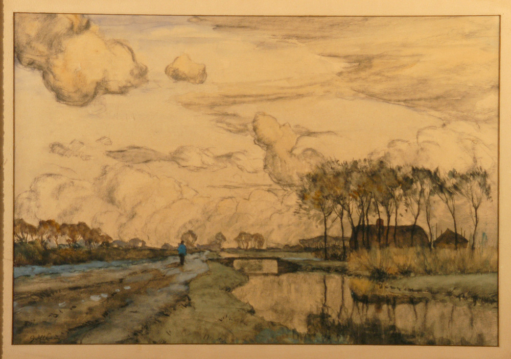 Aquarel, voorstellende landschap omgeving Tricht, ve...