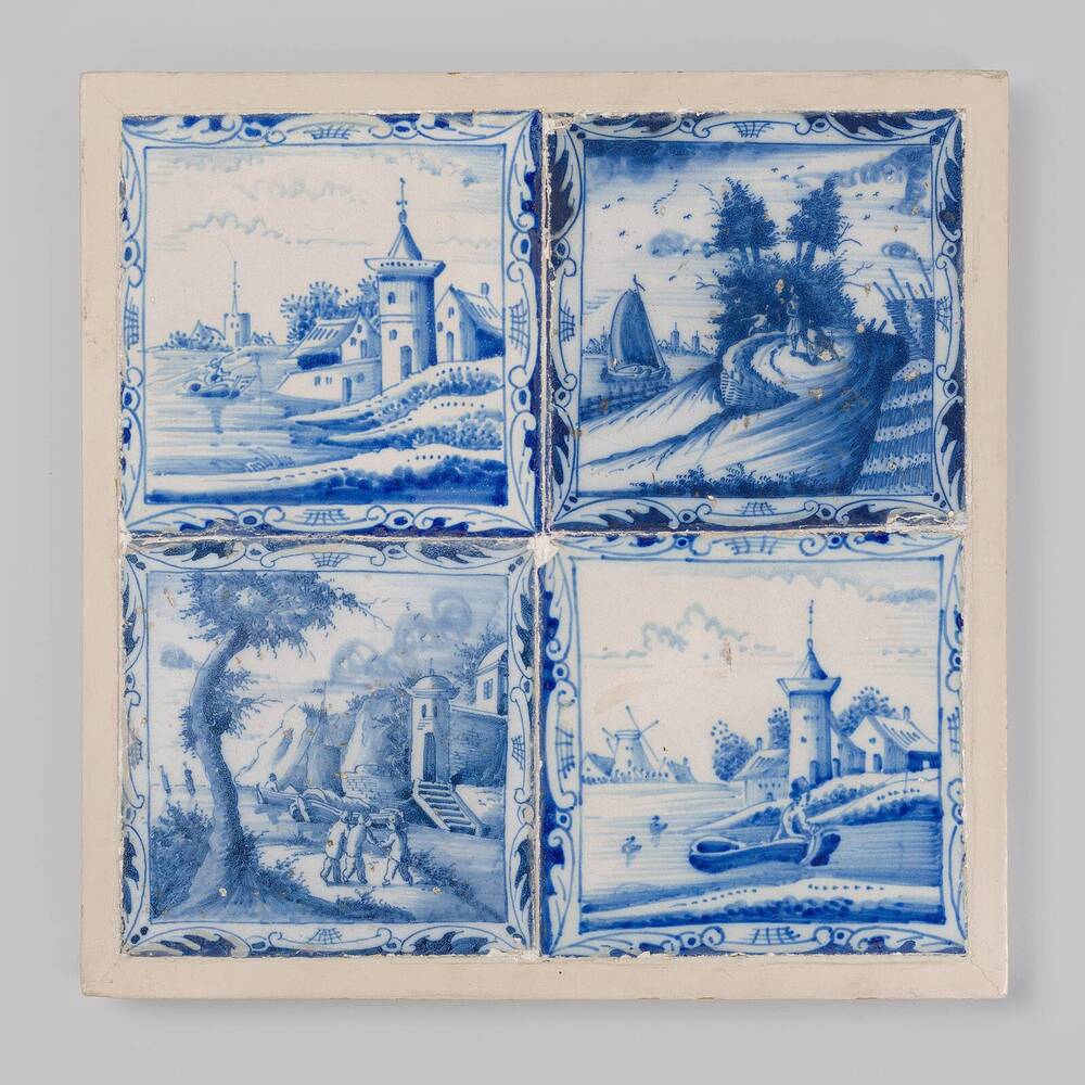 Tegeltableau van keramiek, tinglazuur, voorstellende...