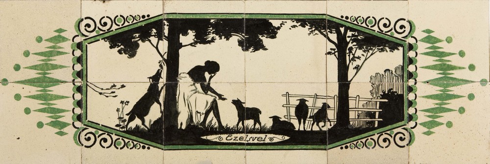 Tegelveld van keramiek, tinglazuur, voorstellende ee...