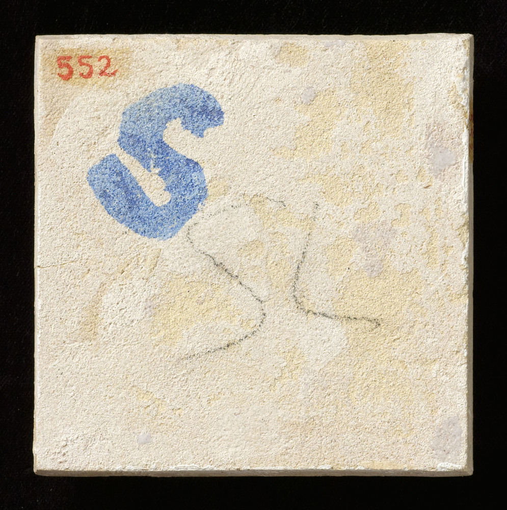 tegel van aardewerk met tinglazuur, voorstellende: o...