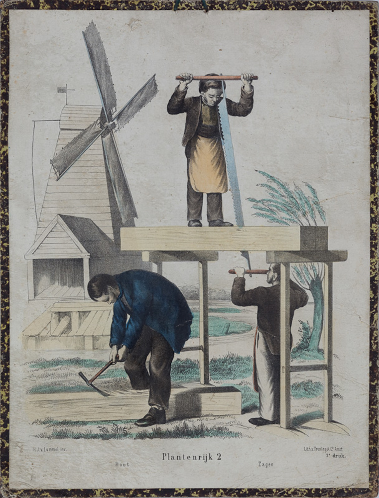 schoolplaat, plantenrijk. Kleurenplaat met molen op ...