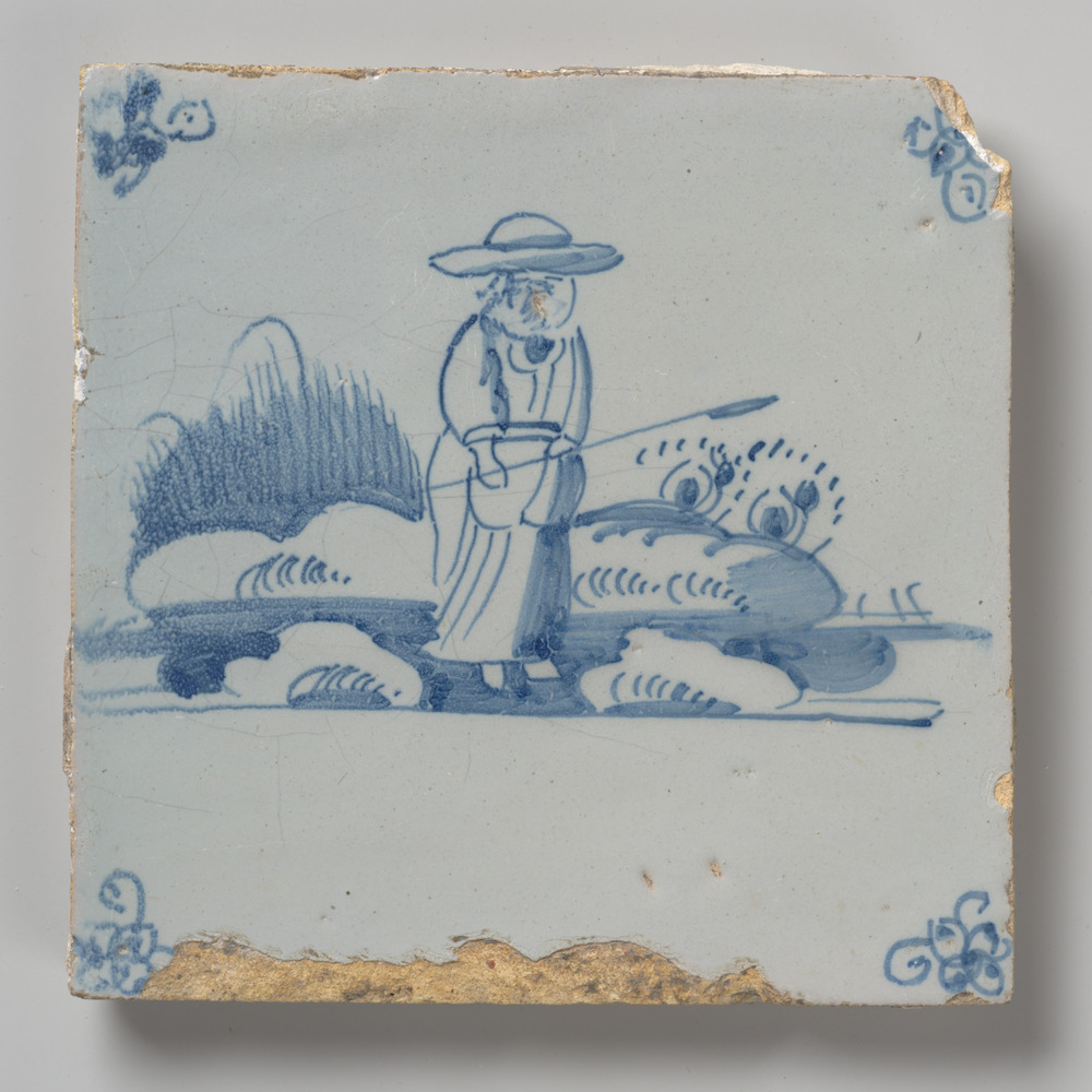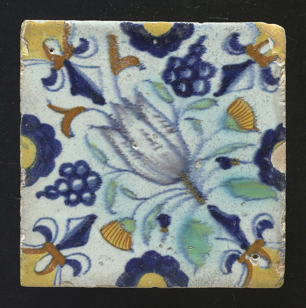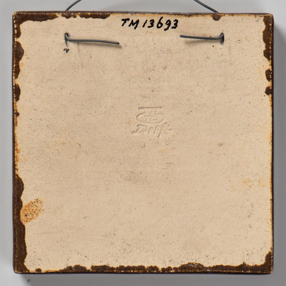 Tegel van aardewerk met tinglazuur voorstellende: or...