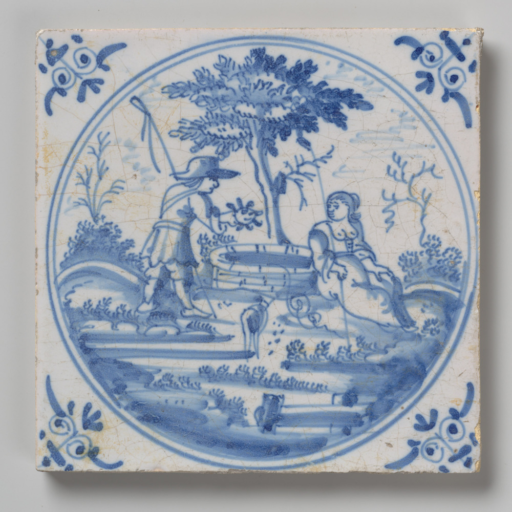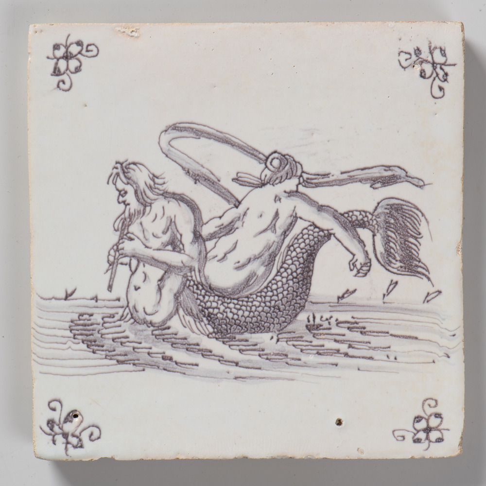tegel van keramiek met tinglazuur, voorstellende: tw...