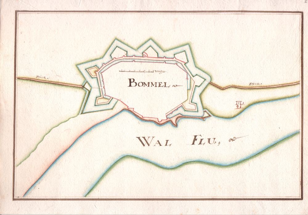 Plattegrond van Zaltbommel met de vestingwerken