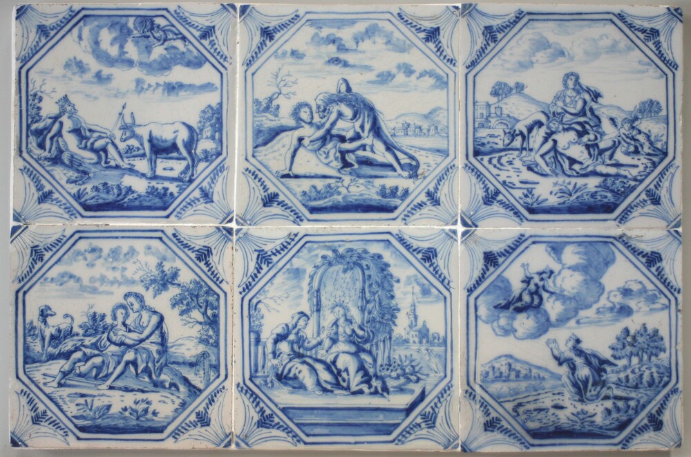 tegelveld bestaande uit zes tegels van keramiek met ...