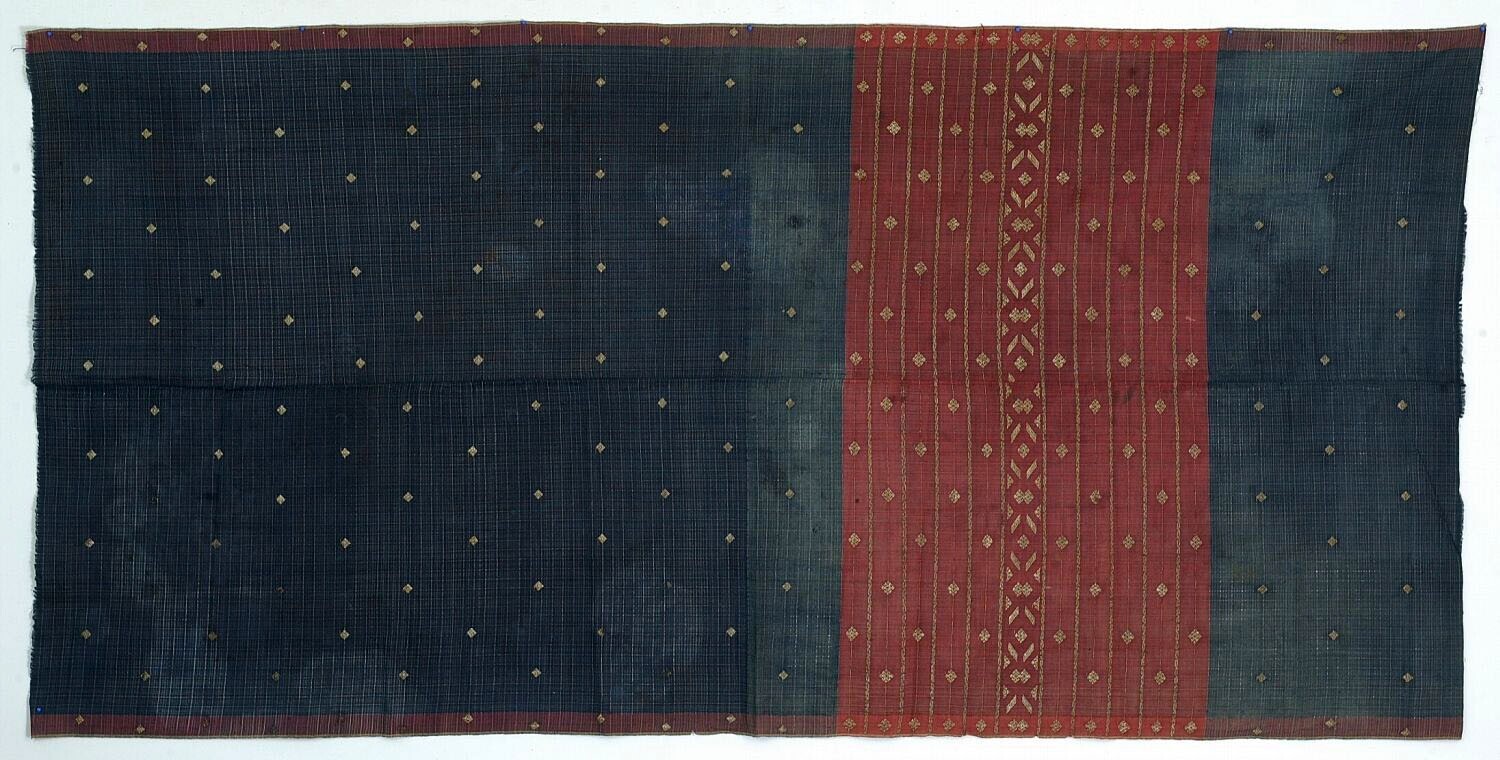 Kokerrok van lurikweefsel met versiering van gouddraad
