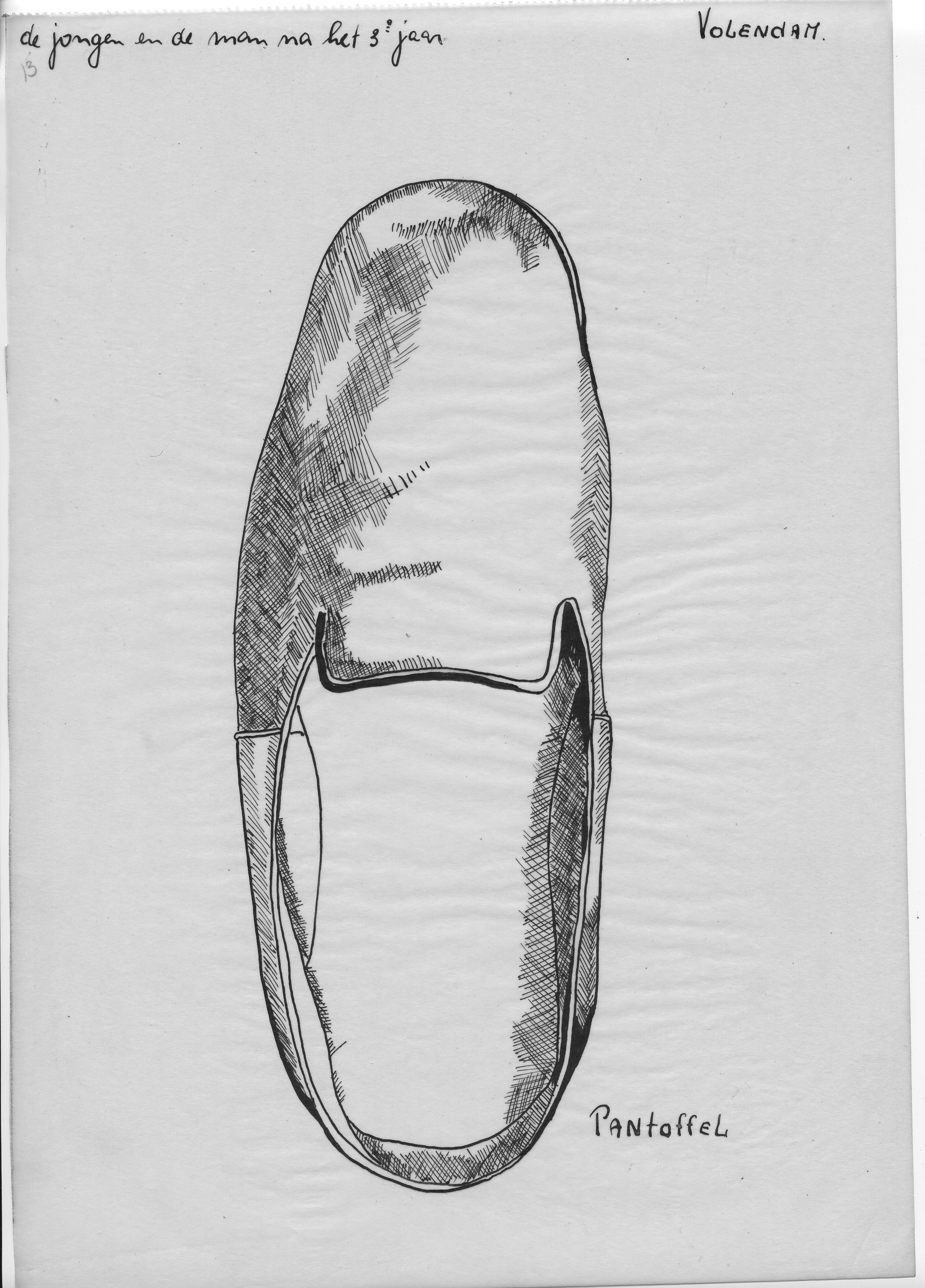Tekening van een pantoffel, Volendam (opmetingsteken...