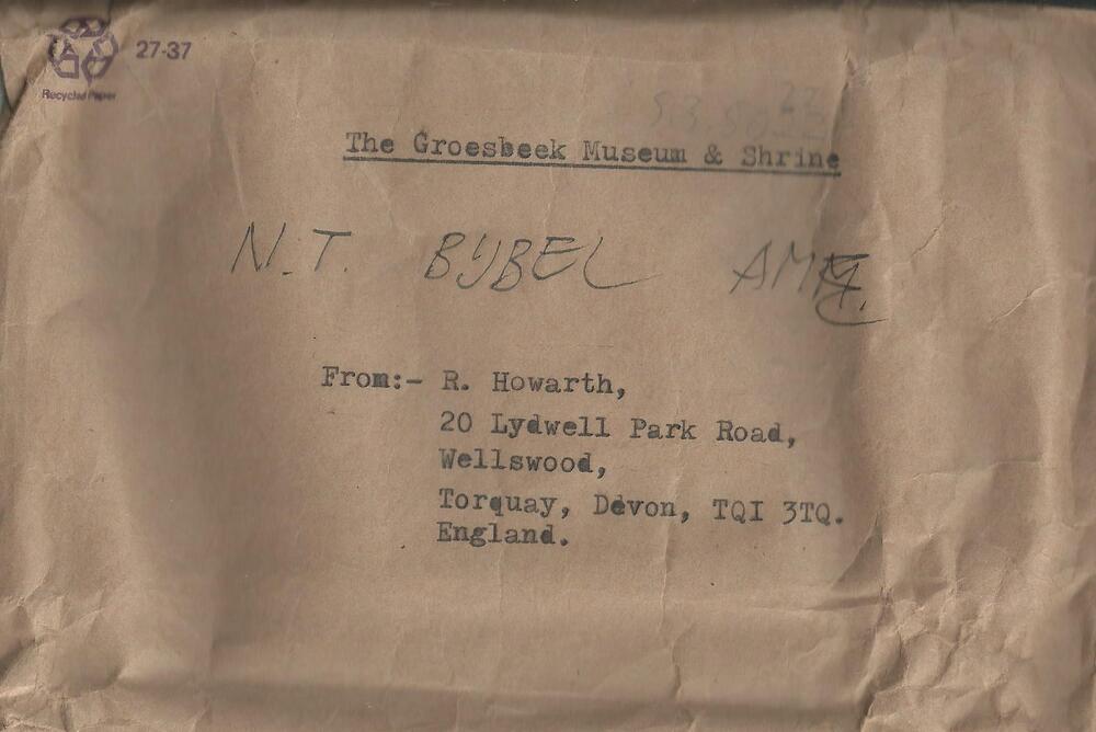 Brief in enveloppe. 23 augustus 1944. Aan den heer G...