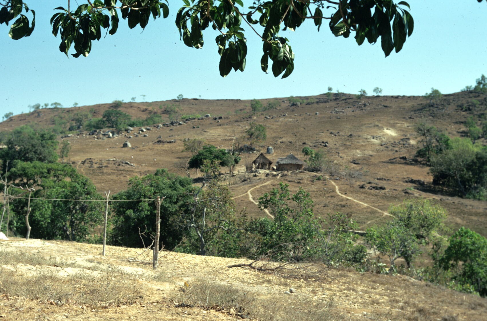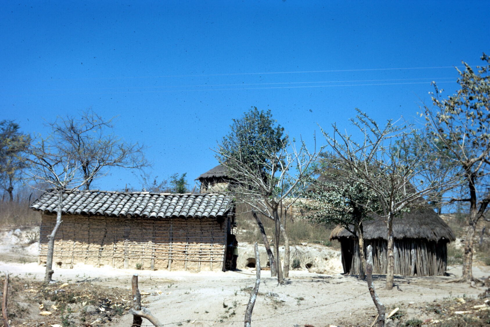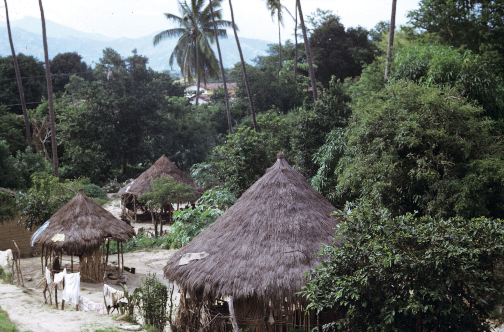 dorpsgezicht met chozas (hutten)