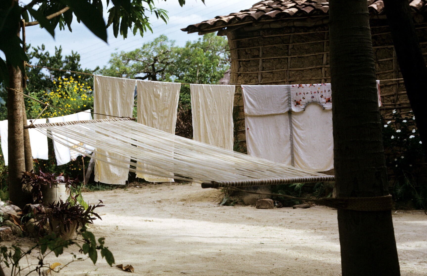 choza (hut), hangmat en wasgoed aan lijn