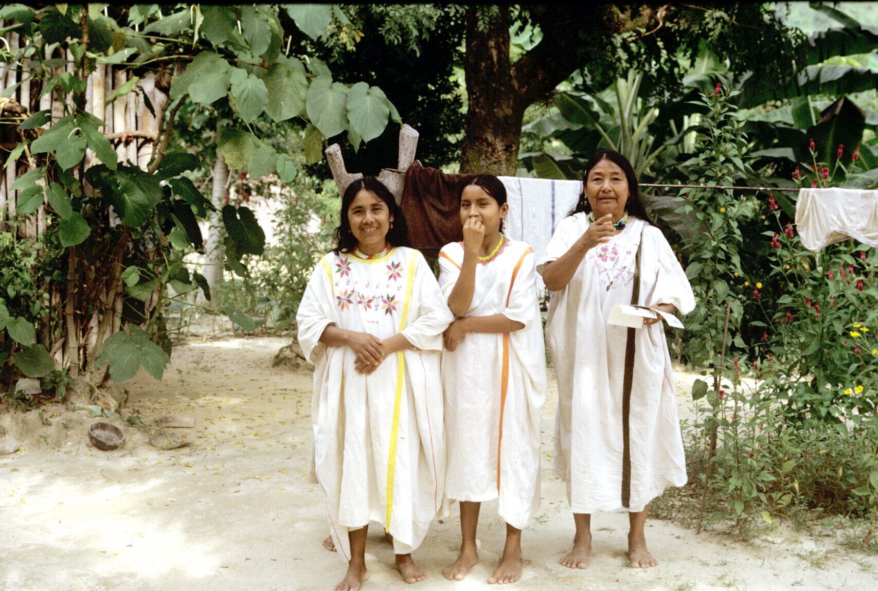 drie vrouwen in lokale dracht