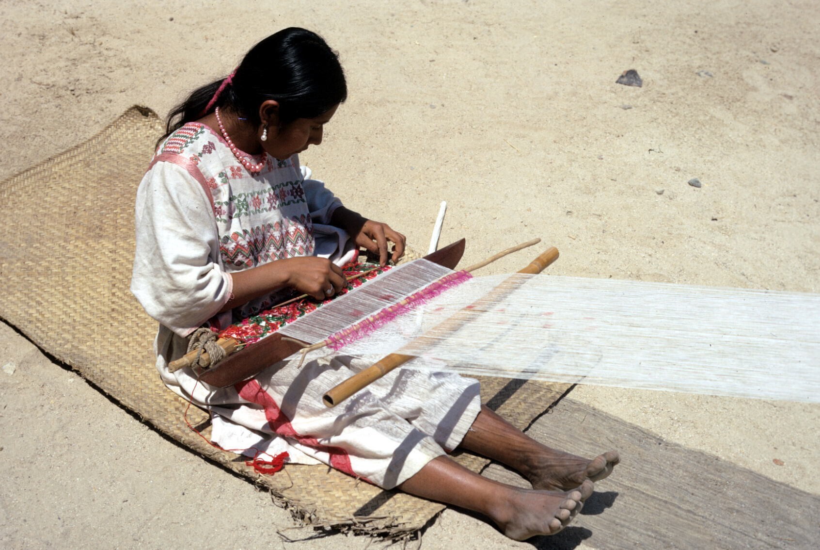 Tacuate-weefster Teresa Caspar, Amusgo huipil wevend