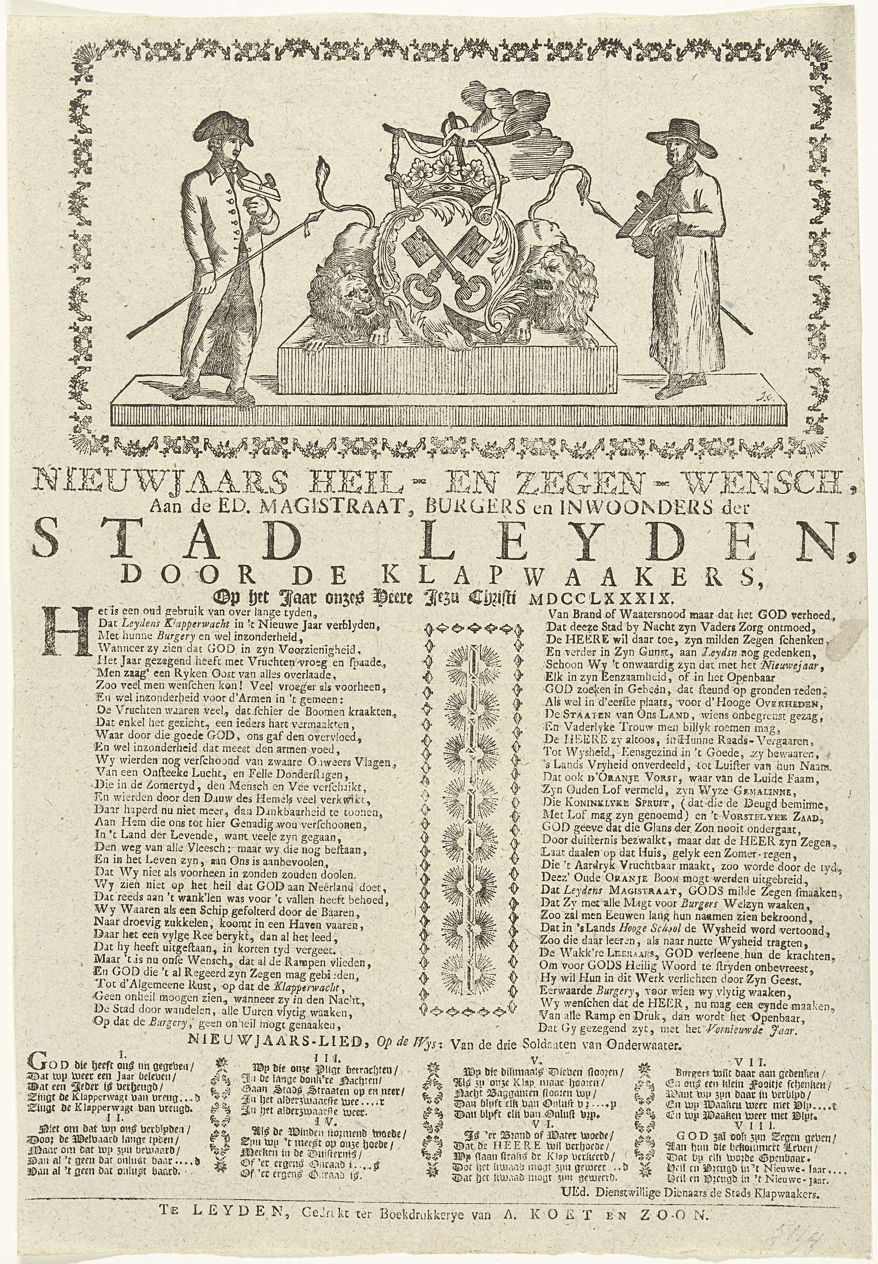 Nieuwjaarsprent van de klapperwacht van Leiden voor ...