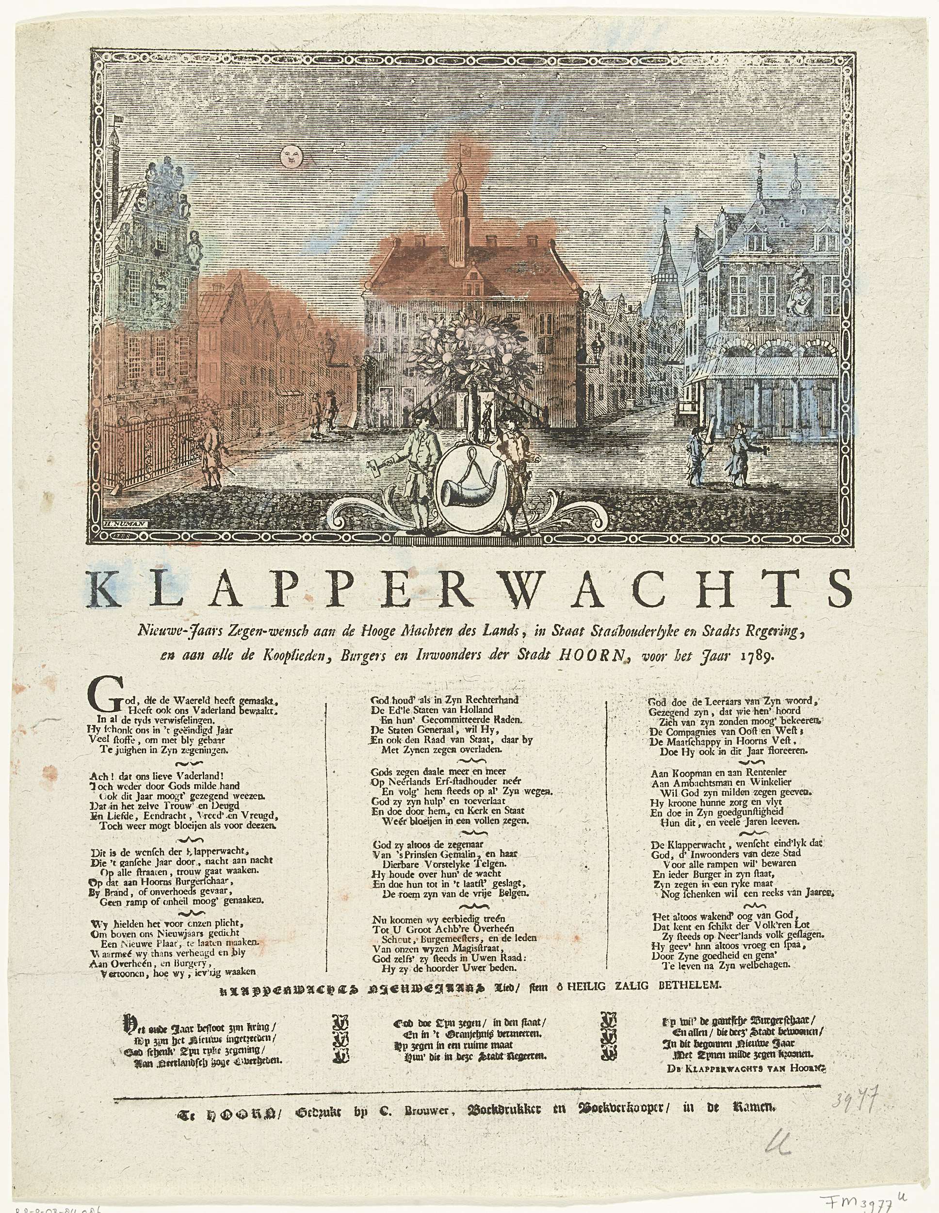 Nieuwjaarsprent van de Hoornse klapperwacht voor het...