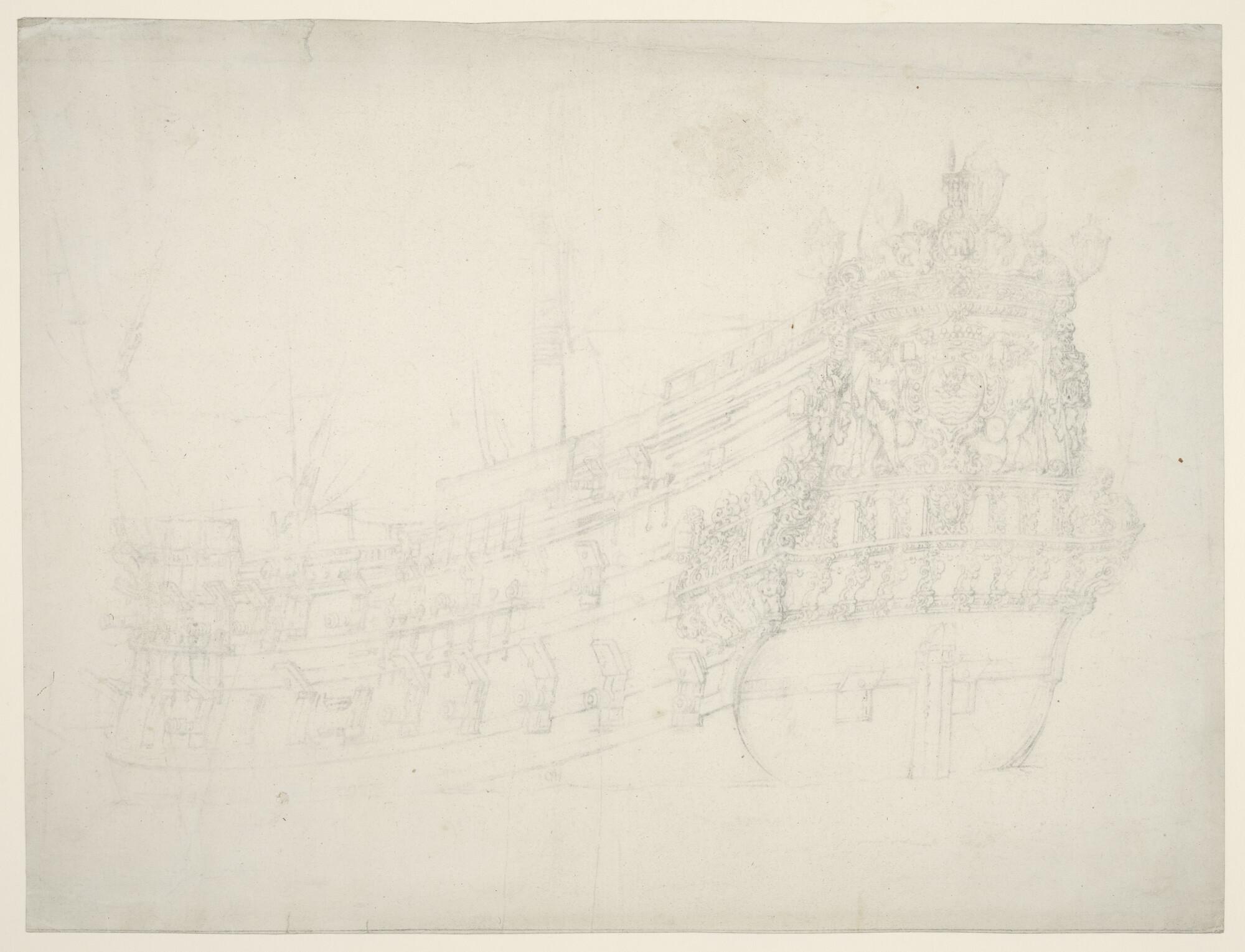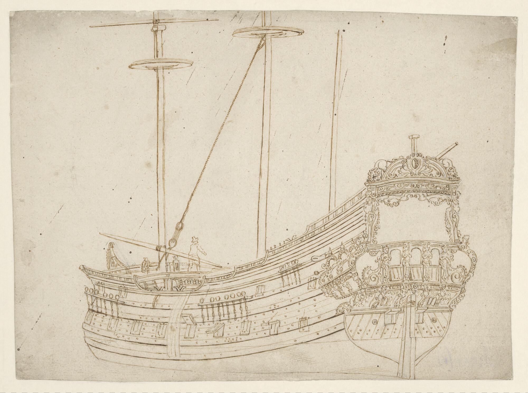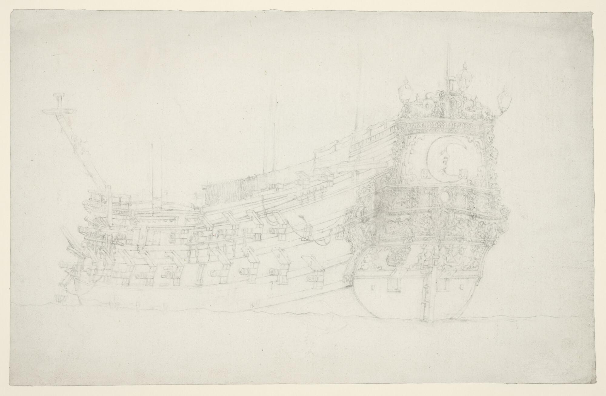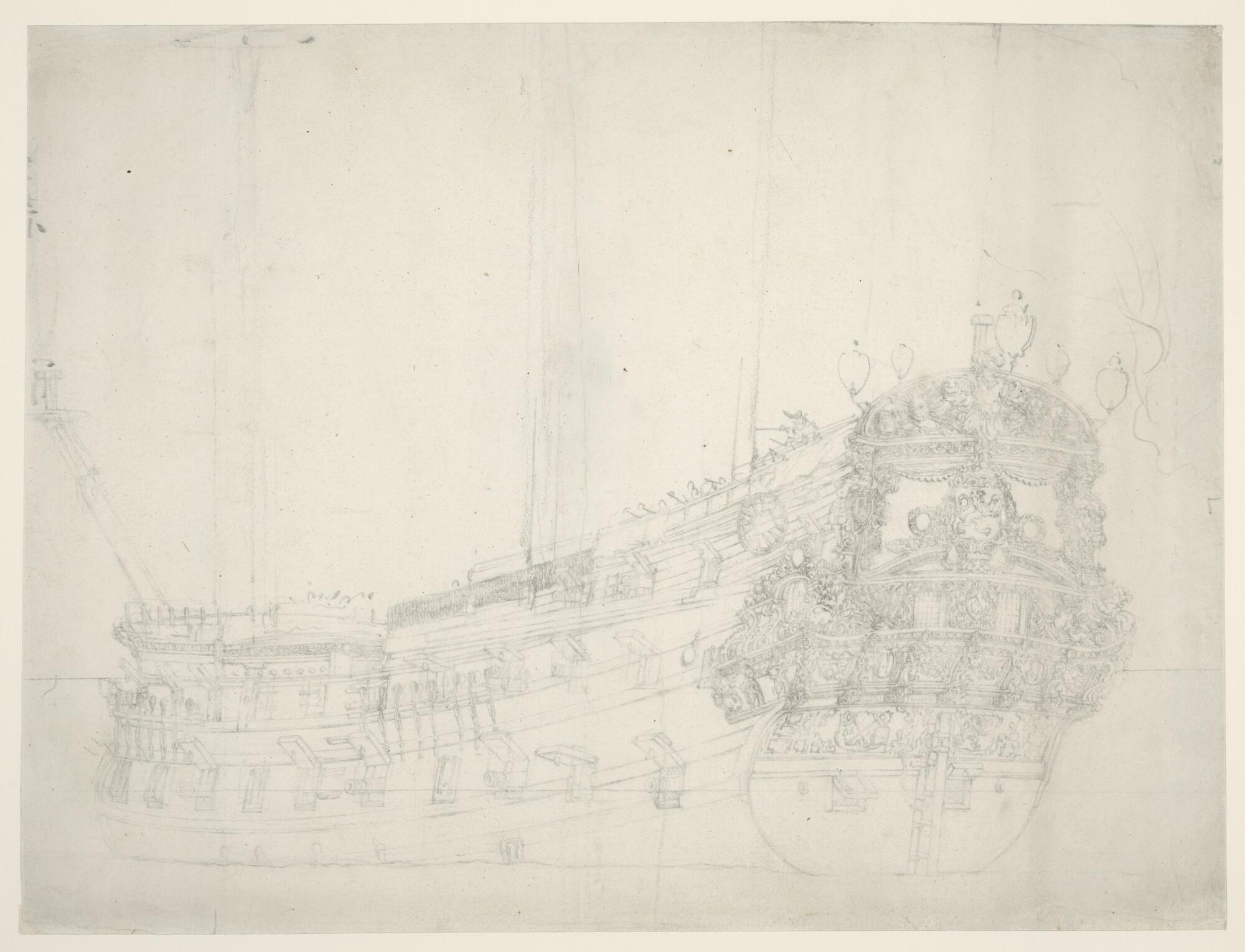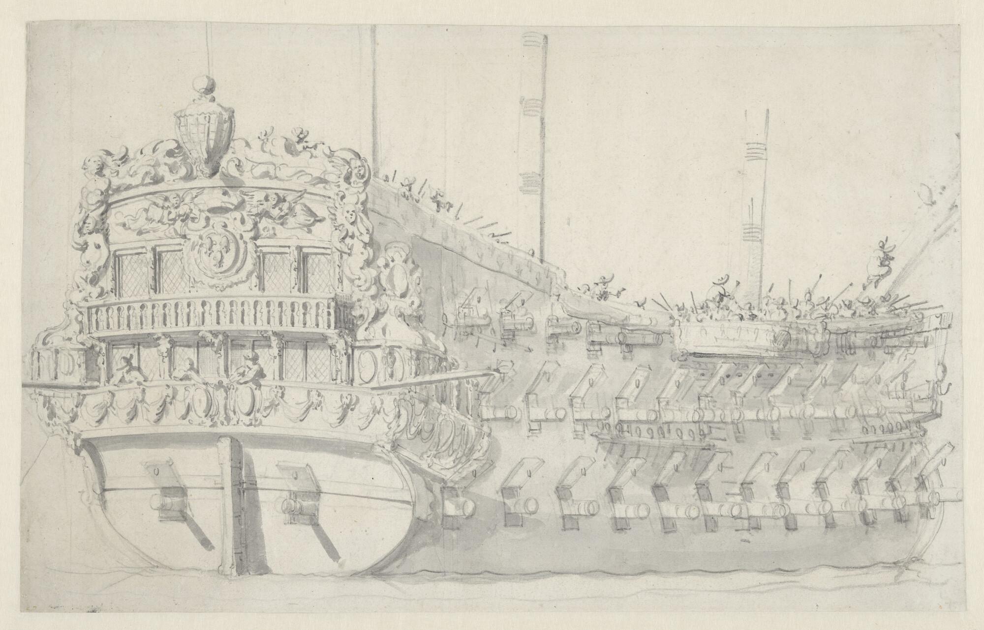 Tekening van een oorlogsschip bewapend met 66 stukken