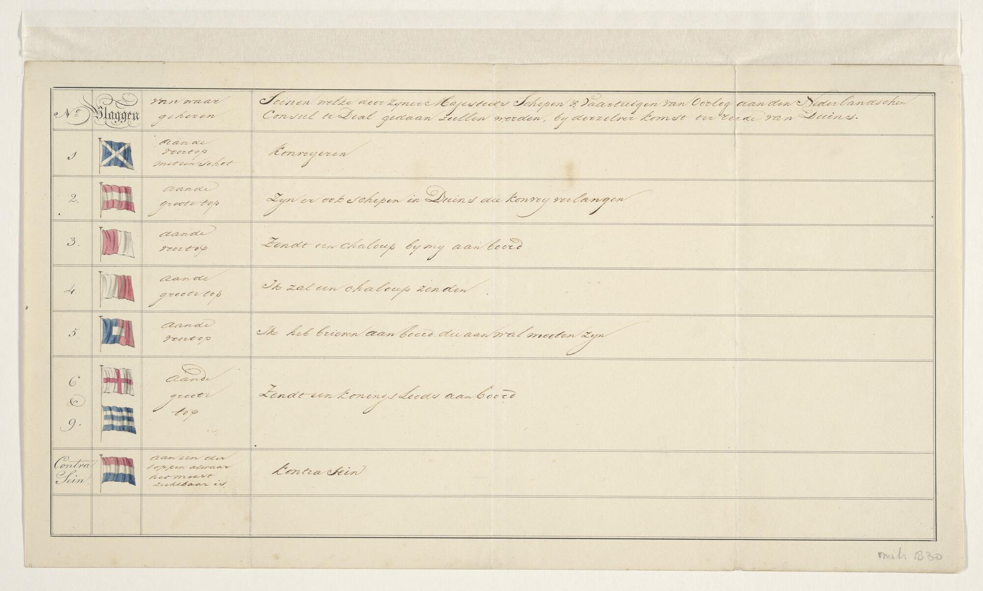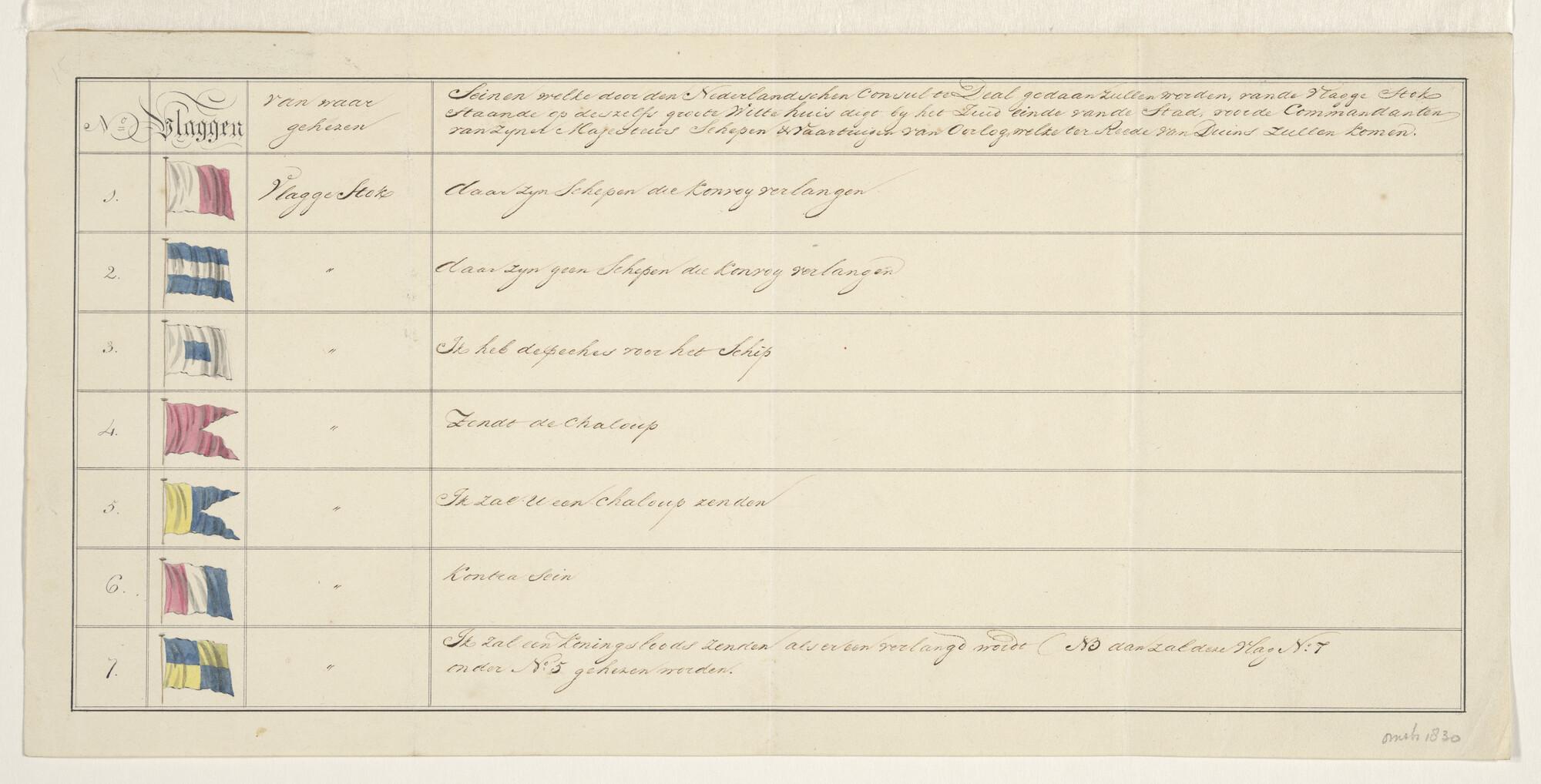 Vlaggenkaart met seinen door den Nederlandschen cons...