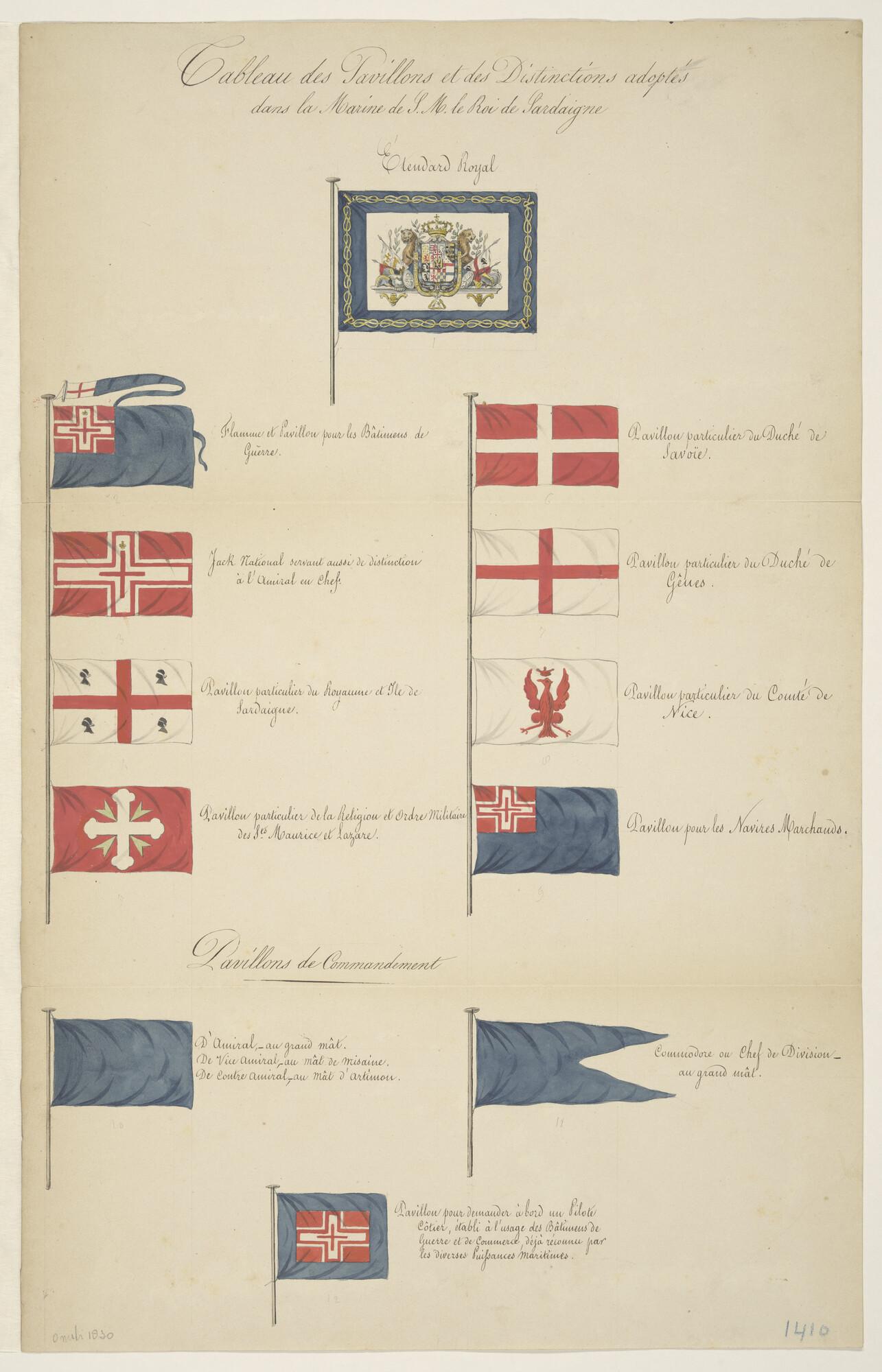 Een vlaggenkaart met 12 vlaggen van de Marine van Sa...
