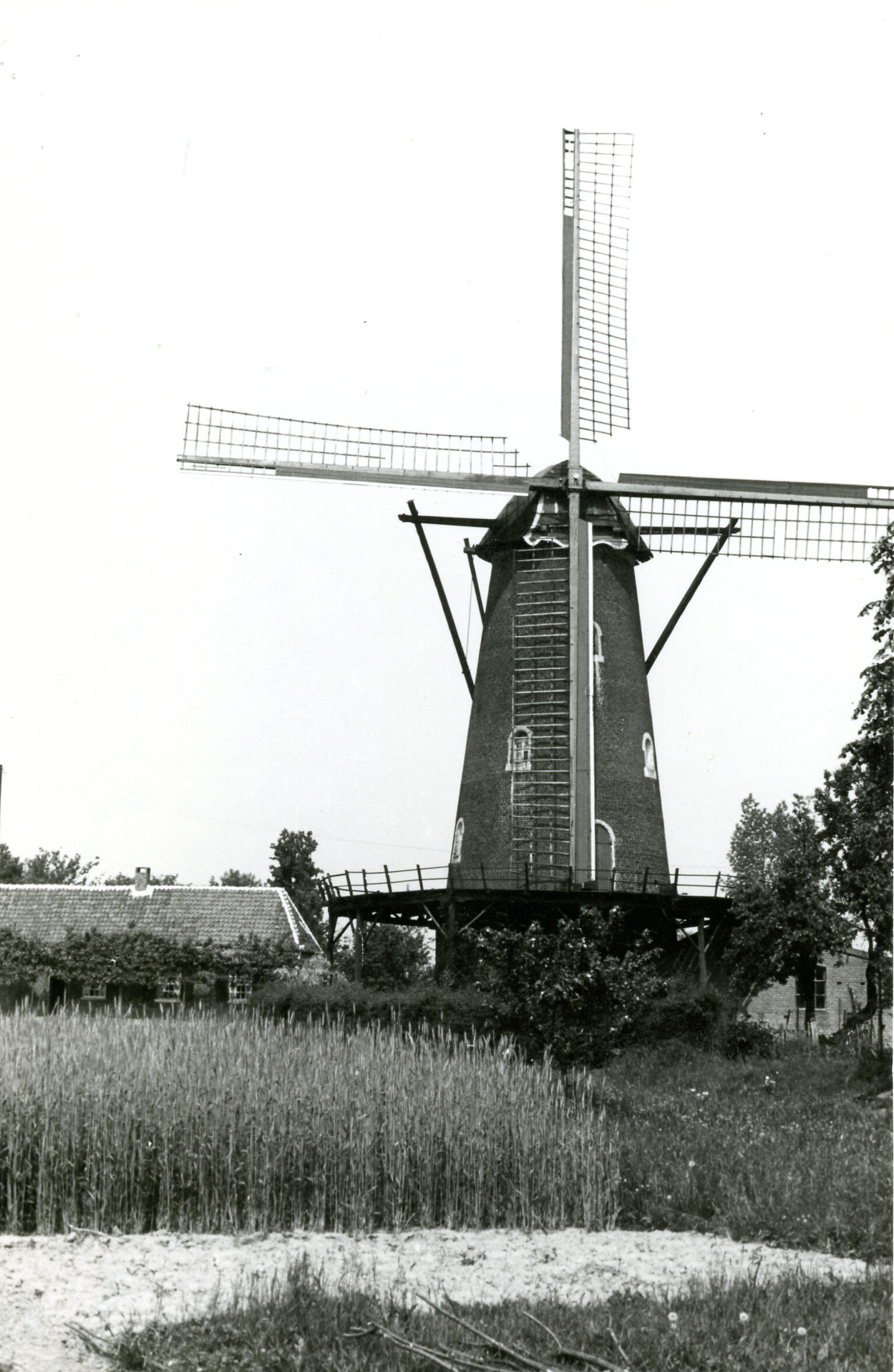 Stellingmolen 'De Hoop', Beers, 1942 (zwart-wit foto)