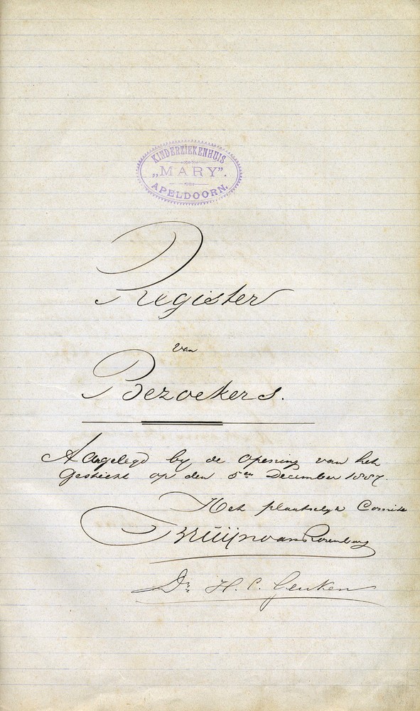 Register van bezoekers, aangelegd bij de opening van...