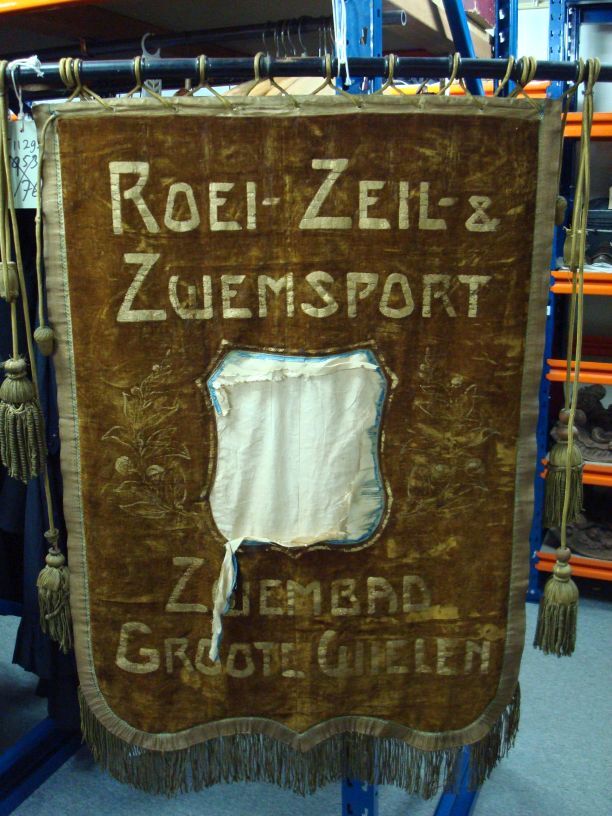 Vaandel waarop Roei - Zeil - & Zwemsport Zwembad Gro...