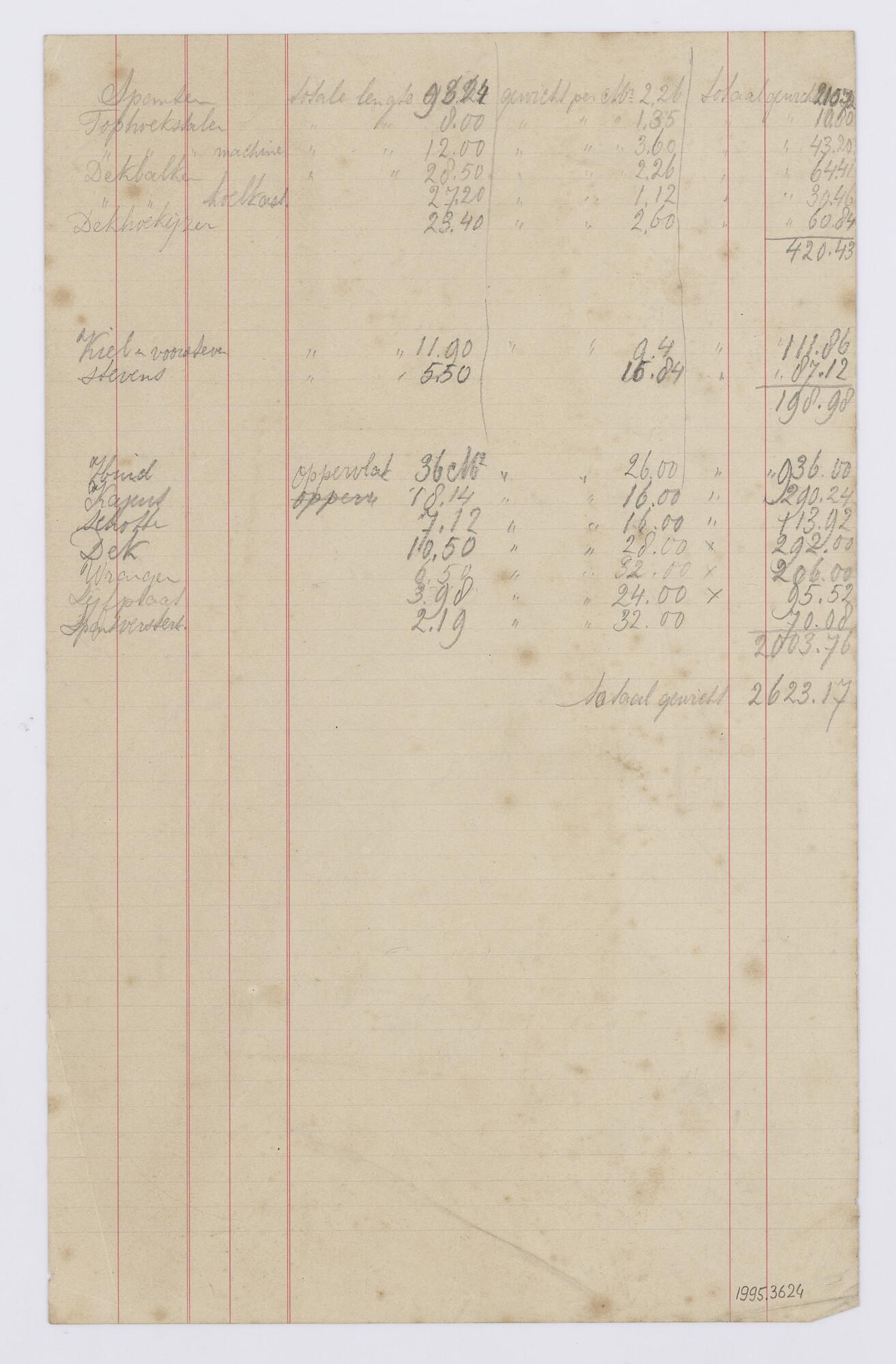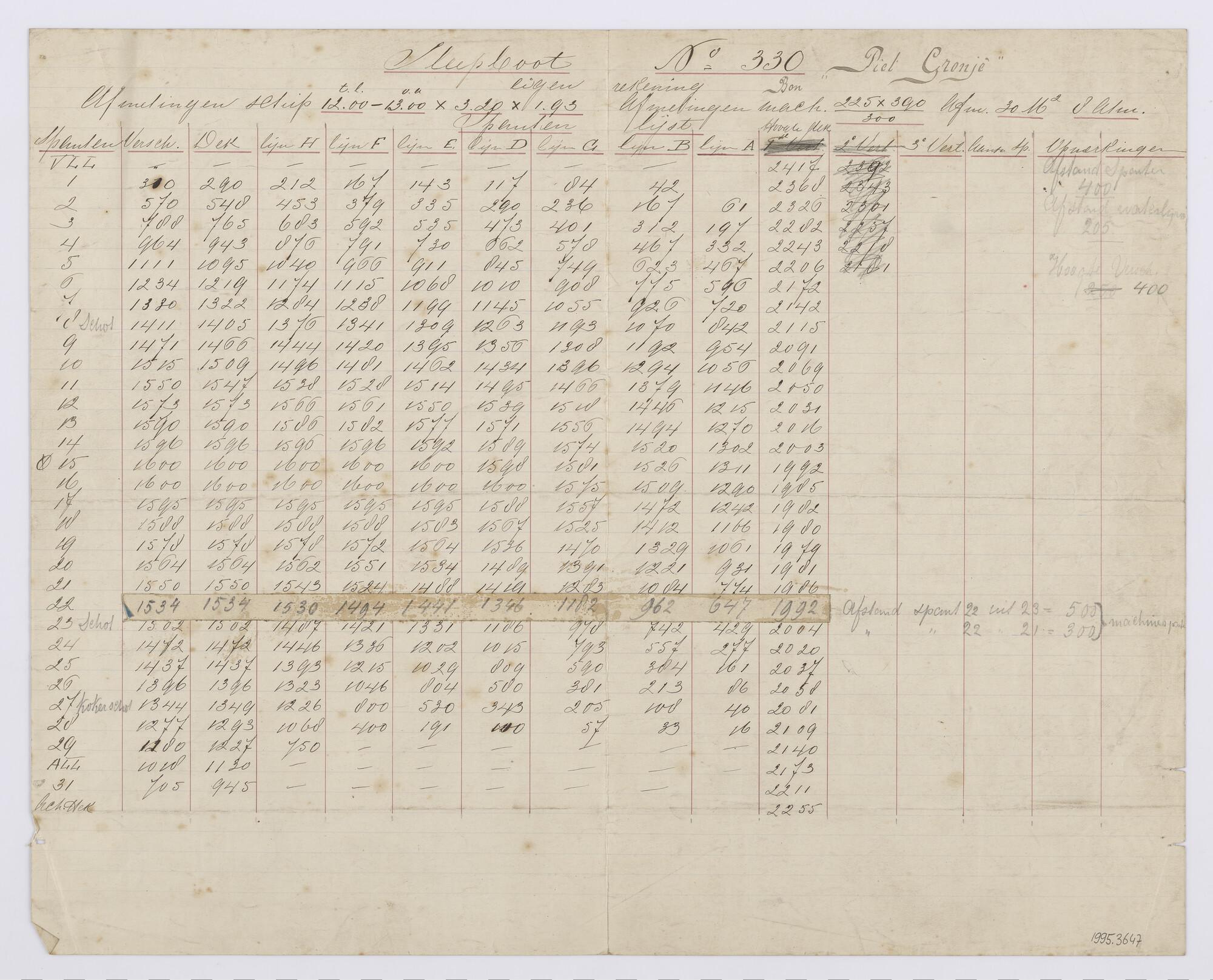 Spantenlijst van de stoomsleepboot 'Piet Cronjé'