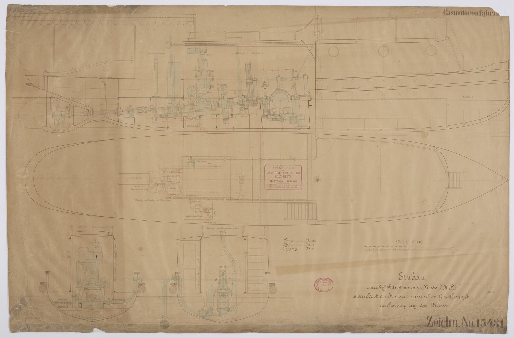 Algemeen plan met inbouw petroleummotor en brandblus...